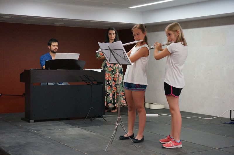 Cerca de 90 alumnos/as llenaron de música el aforo con las notas musicales de los diferentes instrumentos de piano, violín, flauta travesera y guitarra y las actuaciones de los grupos del coro, agrupación vocal en familia, iniciación y lenguaje musical.