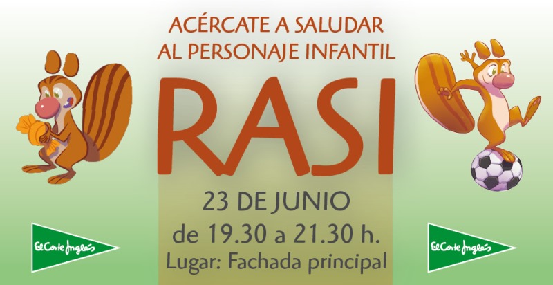 Este viernes 23 de junio, de 19:30 a 21:30 horas, el popular personaje infantil RASI visitará Salamanca para conocer y fotografiarse con todos los niños y niñas salmantinos que se acerquen hasta lafachada de El Corte Inglés de María Auxiliadora.