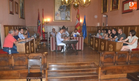 El Ayuntamiento de Ciudad Rodrigo celebró una nueva sesión de Pleno Ordinario a última hora de la tarde del jueves, que estuvo marcada por el calor. Aunque las temperaturas han bajado ligeramente, cómo serán todavía que se dejaron sentir a la perfección en el interior del salón de plenos, pese a que es uno de los lugares más 'fríos' de la ciudad (aunque no tanto como la Catedral). De hecho, la sesión plenaria se desarrolló 'a media luz' para evitar que los focos añadiesen calor.