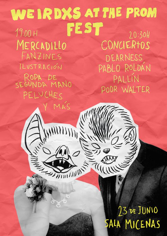 El evento, llamado 'Weirdxs at the Prom Fest' (Raritos en el baile de fin de curso), comenzará este viernes 23 de Junio a las 19.00 con la apertura de un mercadillo de ilustraciones, fanzines, ropa de segunda mano, peluches y artesanía. La organización destaca que "en un contexto de crisis económica es esencial apostar por el reciclaje y la autoedición cultural que permita poner directamente en contacto a quien produce con quien compra el producto".