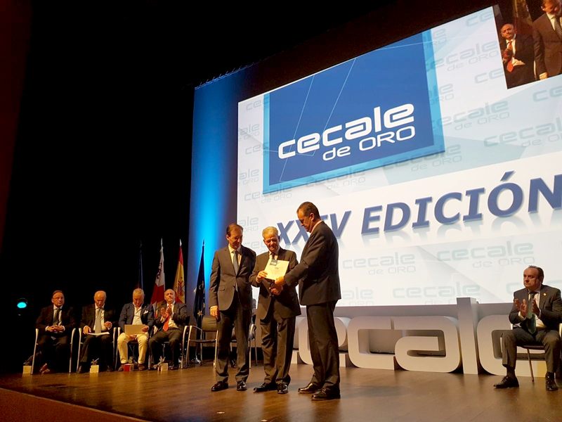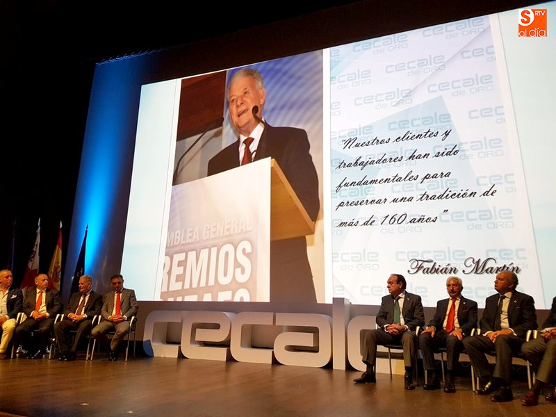 Tras la entrega del premio en Salamanca a principios de este mes de junio, el fundador de la empresa Pan de Ángel, Fabián Martín, famosa por sus obleas de Cipérez, recibió ayer noche en Ávila el Cecale de Oro en un acto al que asistieron, entre otros, el presidente de la Confederación de Organizaciones Empresariales de Castilla y León, Santiago Aparicio, y el consejero de Fomento y Medio Ambiente, Juan Carlos Suárez-Quiñones.