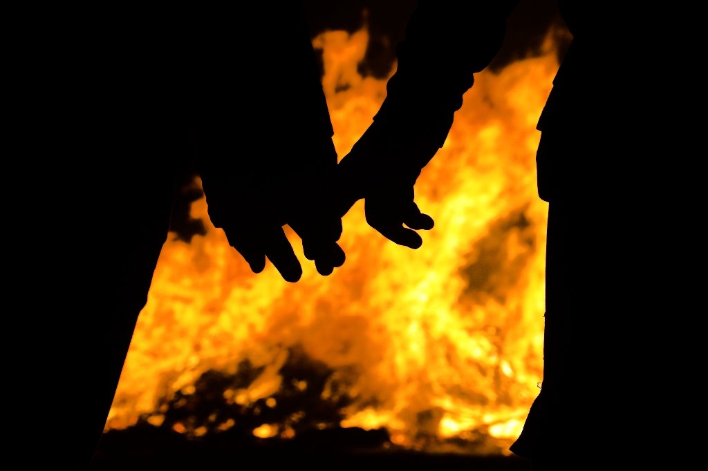 Madrugada de San Juan. Una 'Mirada' llena de fuego con la que SALAMANCArtv AL DÍA quiere expresar su deseo de ofrecer cada jornada a los lectores la palabra renovada. Padre e hijo, y una pareja, contemplan absortos la hoguera purificadora, que en el caso del Zurguén convoca a cientos de salmantinos cada año. El empeño y la fuerza de los vecinos, con el apoyo de otros colectivos y el Ayuntamiento, han permitido que los lugareños hayan celebrado la noche más corta del año, con la que se da la bienvenida al solsticio de verano. Imágenes de José Manuel López. Noche de San Juan, la primera pasión en la larga noche de verano