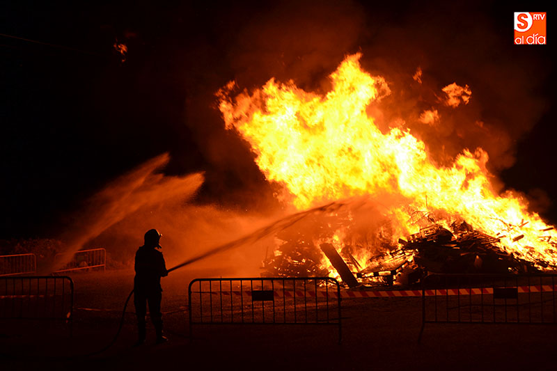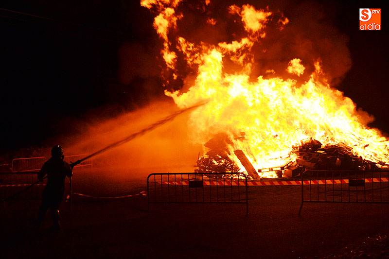 han sido los encargados de prender el primer tramo de los más de 20.000 kilos de madera que este año se han recogido para ella, convirtiéndola en la más grande desde que se recuperara esta tradición. Un espectáculo, que estuvo amenizado por la música, que se ha prolongado hasta bien entrada la madrugada y que estuvo controlado en todo momento por varios efectivos del Parque de Bomberos de Peñaranda.