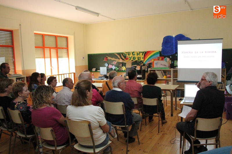 En la presentación de la charla-coloquio, el alcalde agradecía la participación en esta del vicedecano de la Facultad de Bellas Artes, José María Larrondo, y al arquitecto, también vecino eventual de Pereña, José León; a los concejales Margarita y Juan por su empeño y trabajo; a un grupo de vecinos, en su mayoría mujeres, constituidos en un grupo de trabajo y que han sido determinantes a la hora de llevar a cabo el proyecto; pero sobre todo a los cuatro alumnos que el año pasado apostaron por esta idea y a los casi una veintena que este año han estado en Pereña, "algunos de muy lejos y que han interrumpido sus vacaciones", señalaba el alcalde.