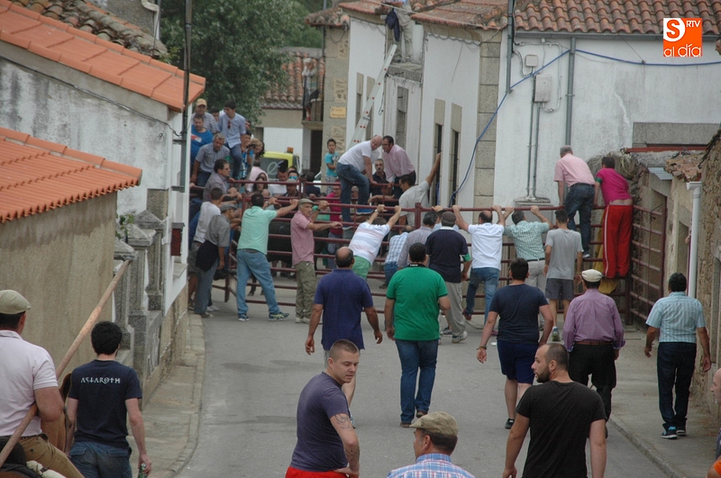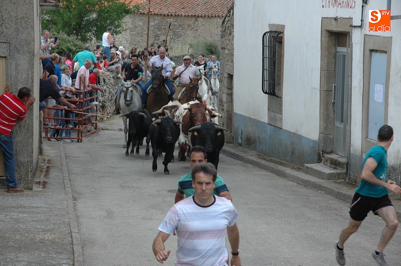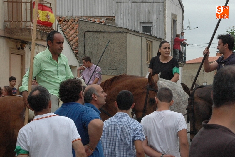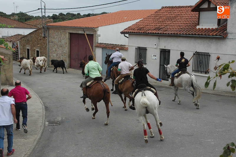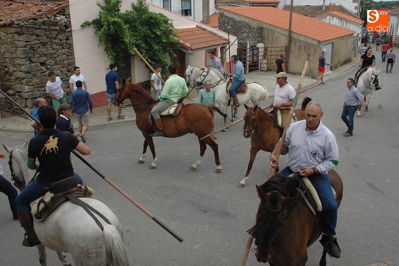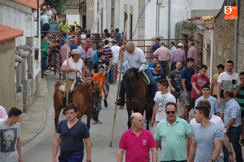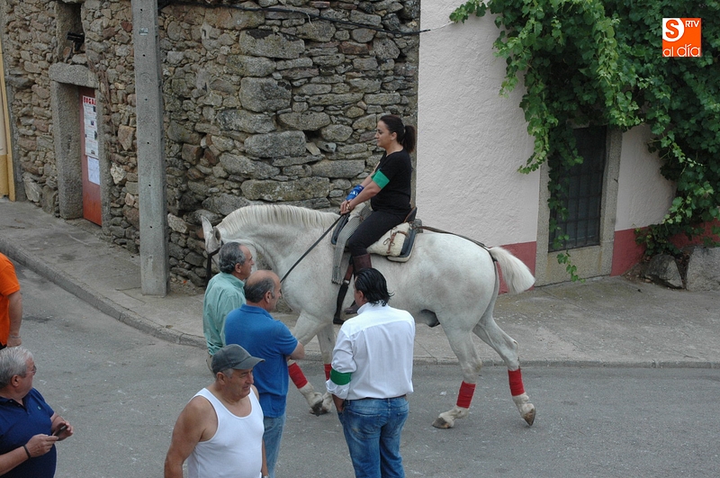 Multitudinario y emocionante. Así discurrió el encierro a caballo celebrado en Bogajo este domingo con motivo de las fiestas de San Juan, festejo en el que se corrieron tres añojos de José Tomás García 'Joseto', de Villavieja. Sin incidencias durante el desarrollo del encierro, los astados serán lidiados esta tarde en la clase práctica en la que intervendrán los alumnos de la Escuela de Tauromaquia de Salamanca, Rubén Blázquez, Antonio Zurdo y Valentín Hoyos.