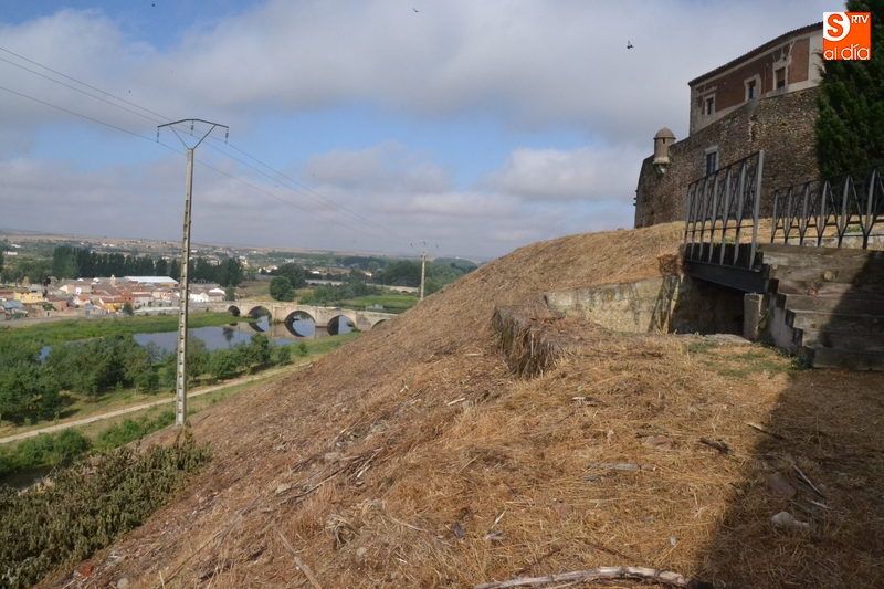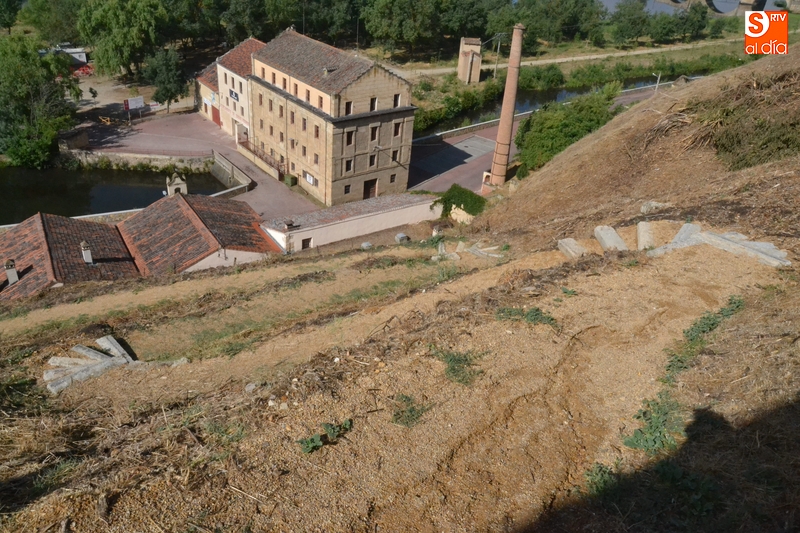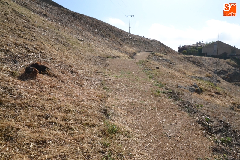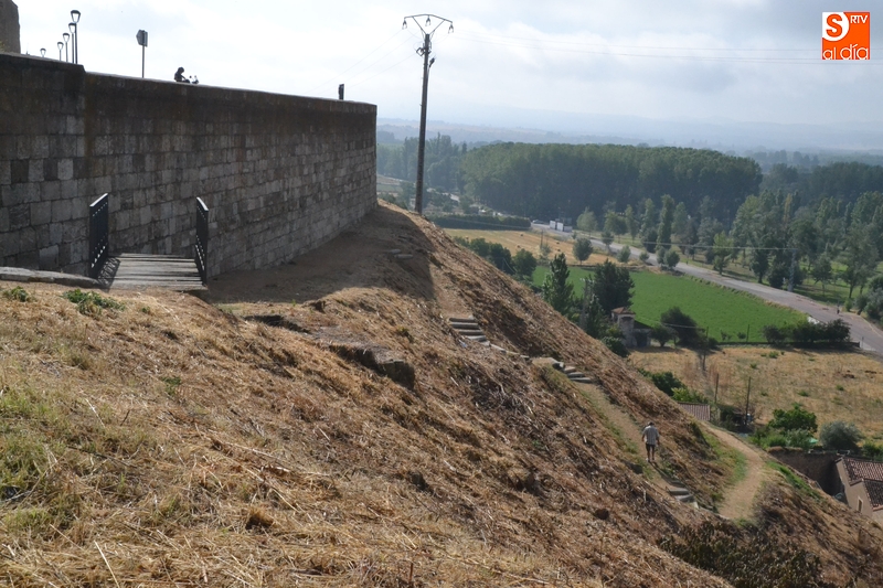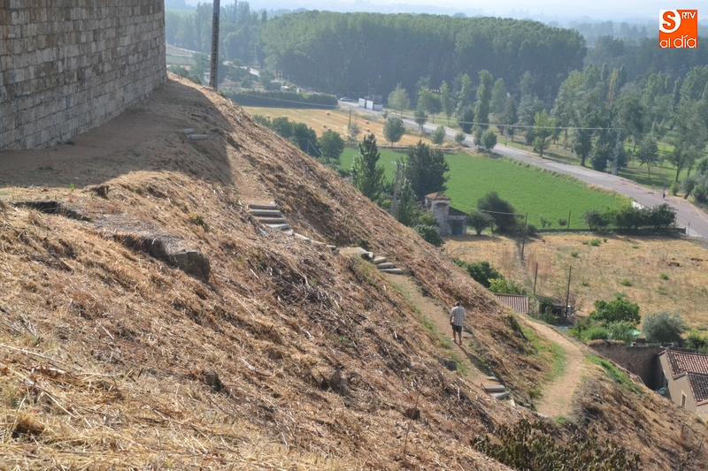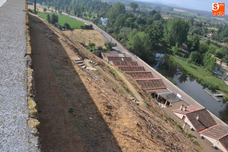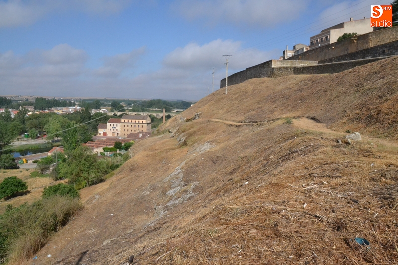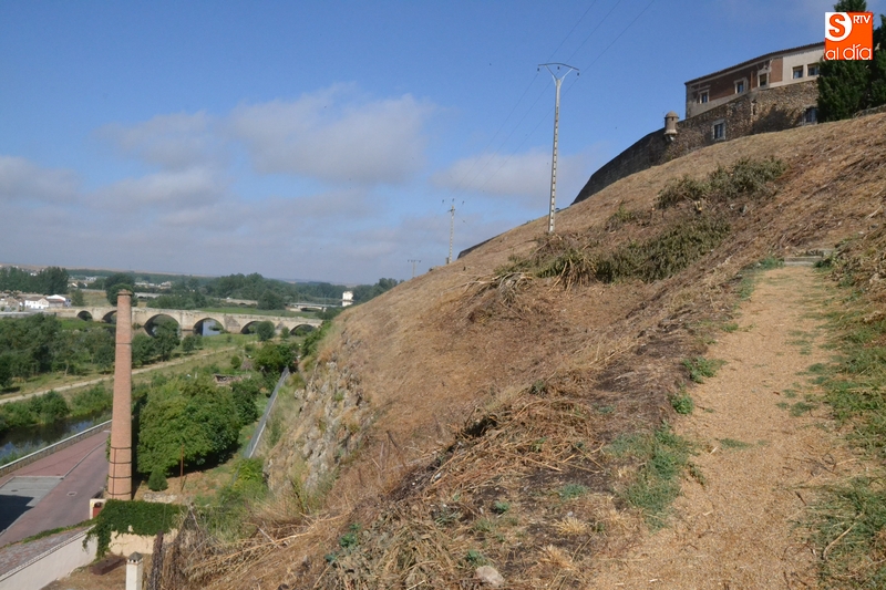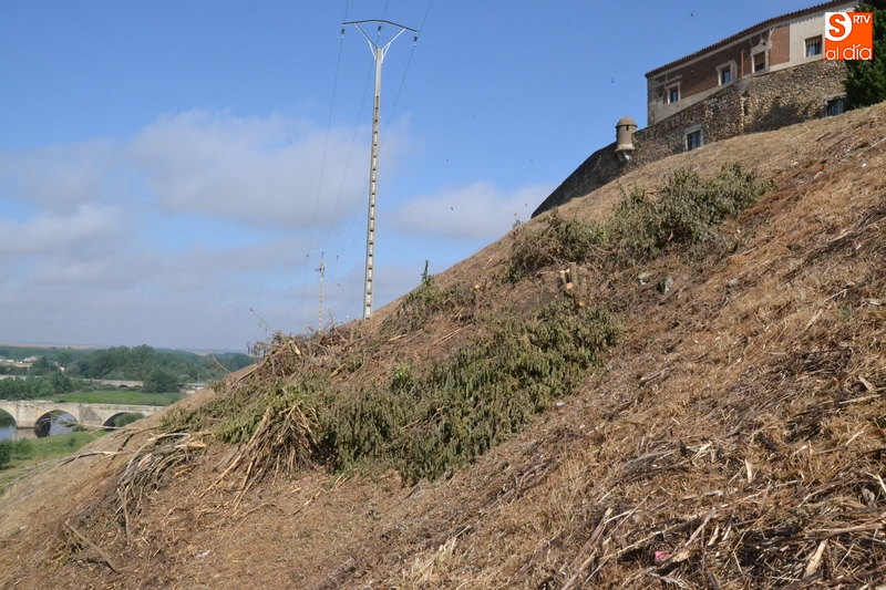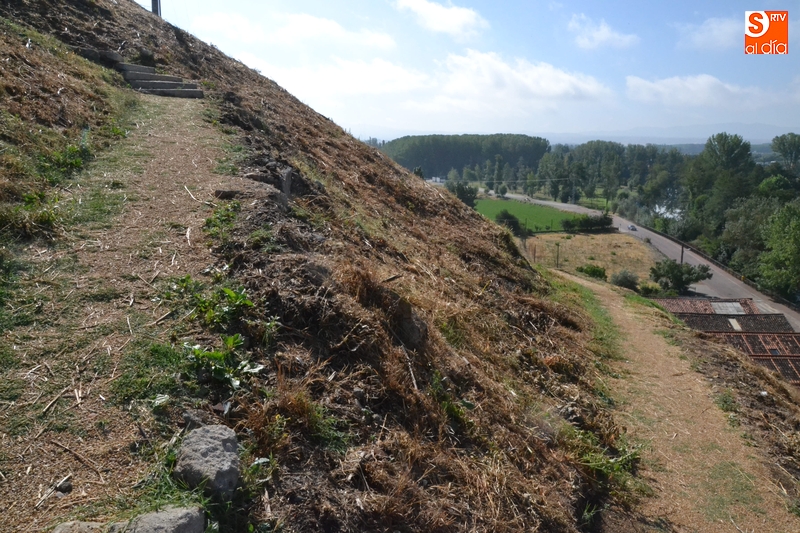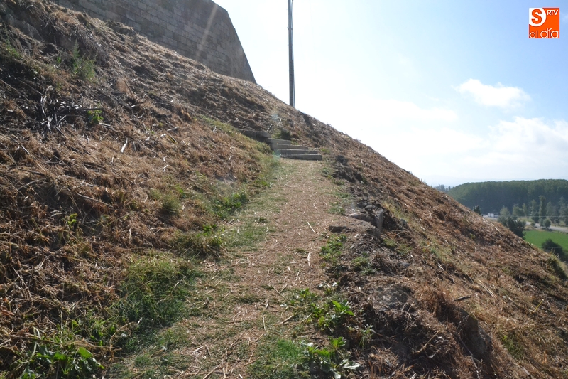 La intervención en esa zona de los senderos se ha completado con un profundo desbroce de todo el glacis entre el barrio de San Pelayo y el Puente Mayor. Después de que en los años anteriores el Equipo de Gobierno renunciase a hacer este desbroce por motivos de seguridad debido a la pendiente de la zona, este año, según explicó Joaquín Pellicer, se ha decidido limpiarlo contratando debido a esa pendiente los servicios de una empresa especializada. La intervención tiene un coste de 4.500?, que incluyen la limpieza del Puente Mayor.