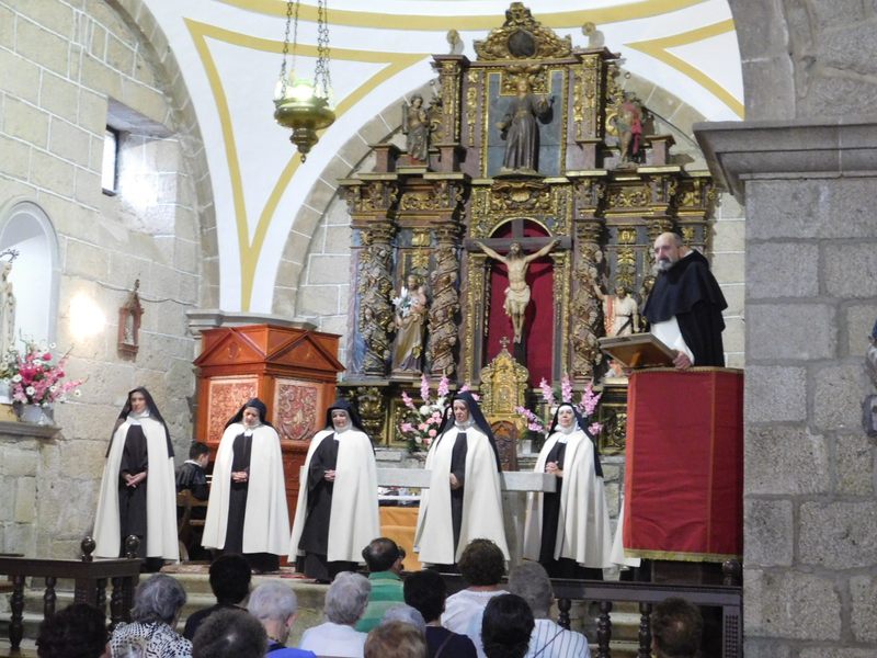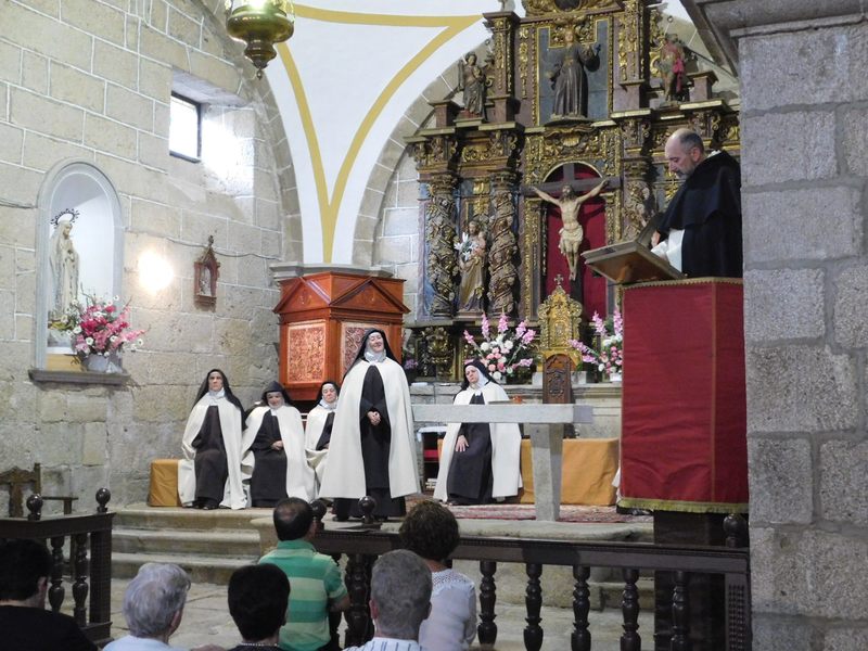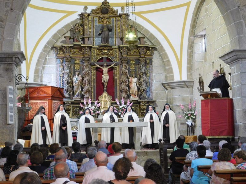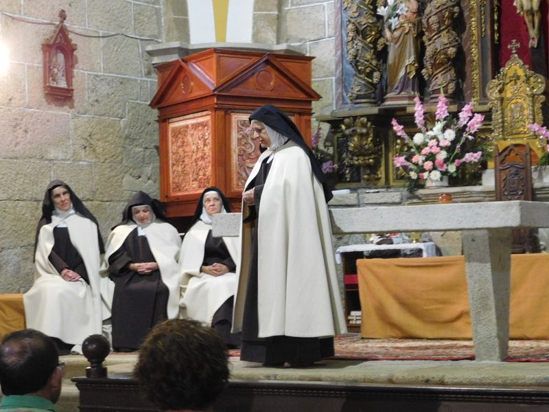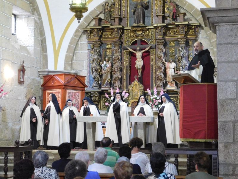 Las puertas de la iglesia de Ahigal de los Aceiteros, se abren a las siete de la tarde. Un magnífico retablo barroco del XVIII, obra del alumno de Churriguera, Felipe Cervera y que preside el Altar Mayor, aparece ante nosotros. Allí la titular de la parroquia, santa María Magdalena, mujer de gran significado en la vida de Jesús de Nazaret, cede su protagonismo en esta tarde, a otra no menos significativa. Hablamos de Teresa de Jesús, que 16 siglos después del paso del nazareno por la Tierra, le entregó toda su vida y amor incondicional, arrebatada por su mensaje. Los actores de Lazarillo de Tormes, con el sencillo atrezzo que aportan (hábitos de estameña, púlpito y la réplica del órgano del maestro Salinas), nos trasladan a la época de la España renacentista, y desde la iglesia del convento de Alba de Tormes, asistimos al recorrido de toda una vida, de toda una mujer, que revolucionó su encorsetado tiempo en pos de favorecer a oprimidos, marginados y sobre todo sus congéneres las mujeres. Al volver a nuestro tiempo cuando la obra finaliza, algo nuevo permanece, pues en opinión del público asistente en cada matiz de la puesta en escena se encierra una clave que nos acerca a este increíble y "mal contado" personaje que es Teresa de Jesús.