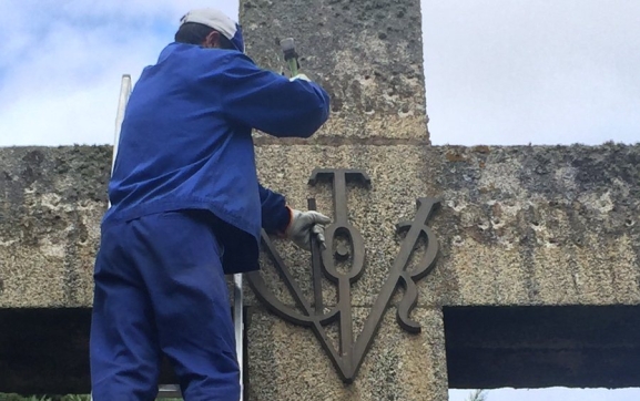 EL BODÓN | Se ha retirado una leyenda que había a base de letras individuales y un víctor franquista en la cruz de la Iglesia