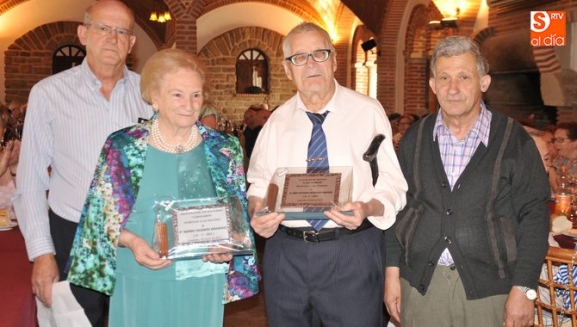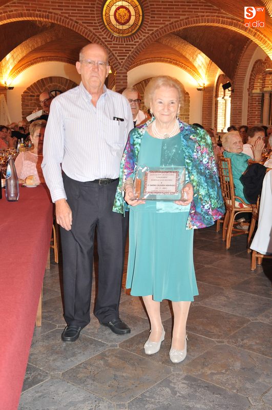 LUMBRALES | Amparo Calderón Hernández, de 91 años y 26 años como socia, y Juan Antonio Fregeneda Borrego, de 90 años y 25 de asociado, recibieron ayer el homenaje de sus compañeros