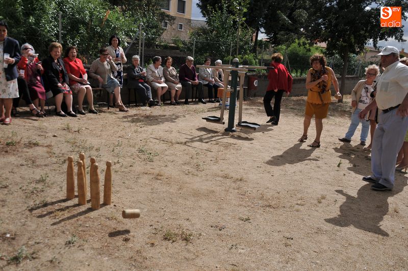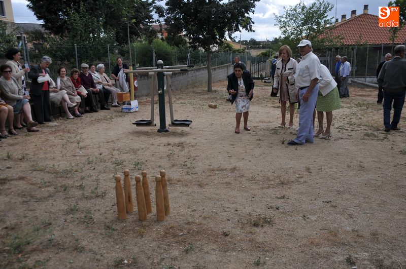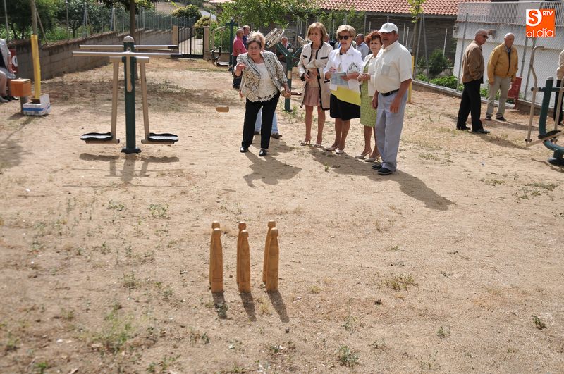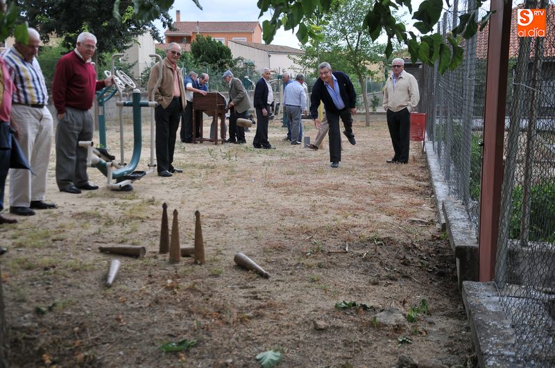 La fiesta se trasladó despues al recinto de aparatos de gimnasia ubicado al lado del hogar del jubilado, donde un numeroso grupo de mayores se animó a participar en juegos tradicionales como la rana y los bolos, para mujeres y hombres.