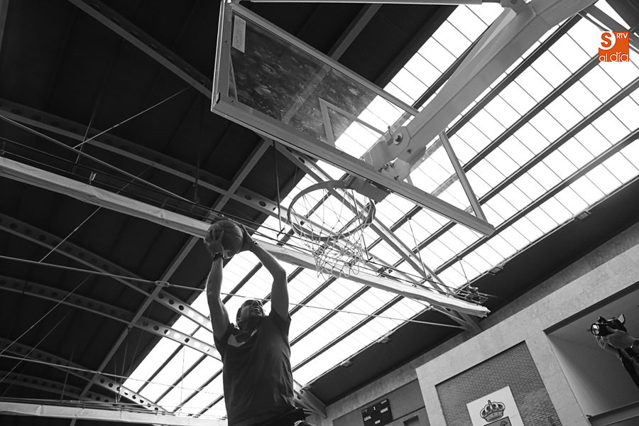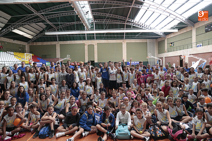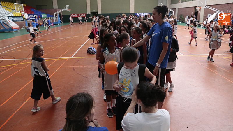 Pero el entrenamiento matutino iba a durar menos de lo que se pensaba. Aliados con la lluvia que hizo acto de presencia, los niños fueron trasladados al pabellón apenas una hora después de haber iniciado la marcha. Concentrados todos en el pabellón, se anunció una visita. Los campistas, y algún entrenador al que se le había reservado también la sorpresa, formaron un pasillo a la entrada de la pista. Y por esa entrada, entre una enorme ovación, entró, recién llegada desde lo más alto del podium del Eurobasket, Silvia Domínguez.