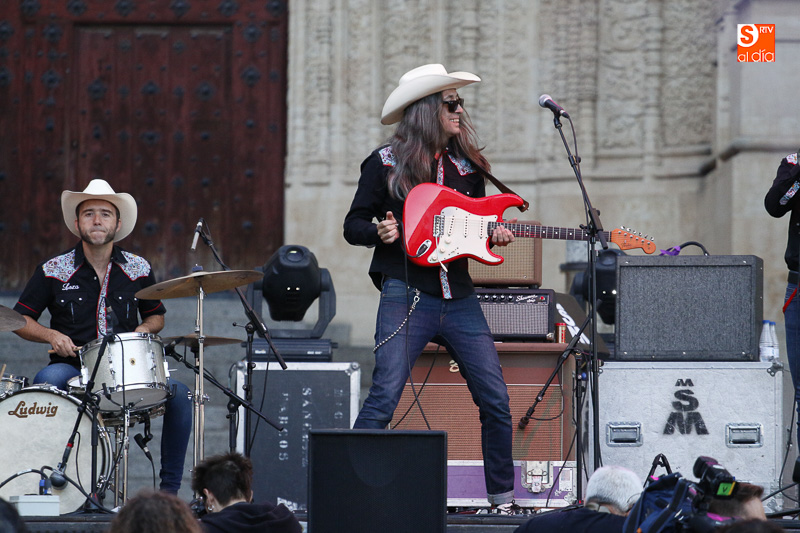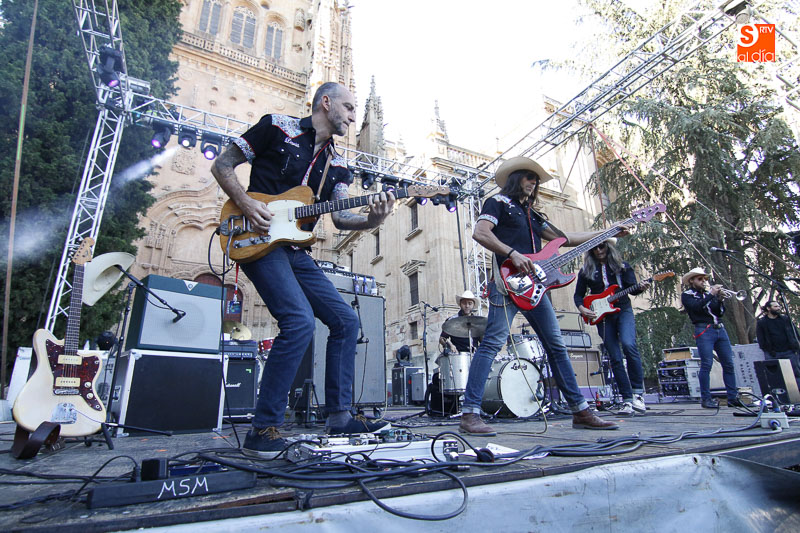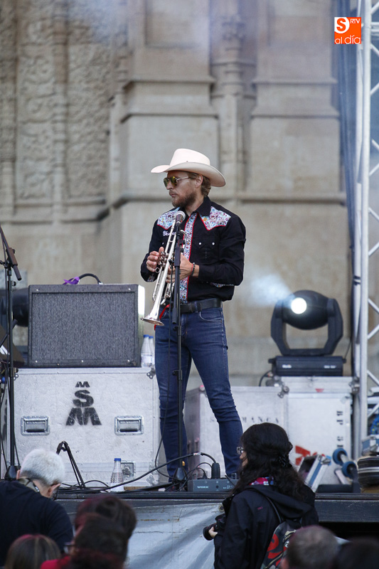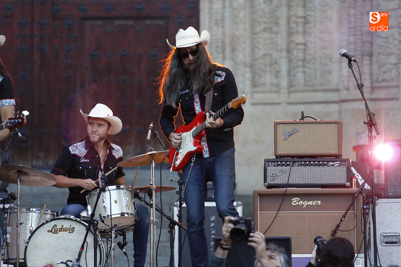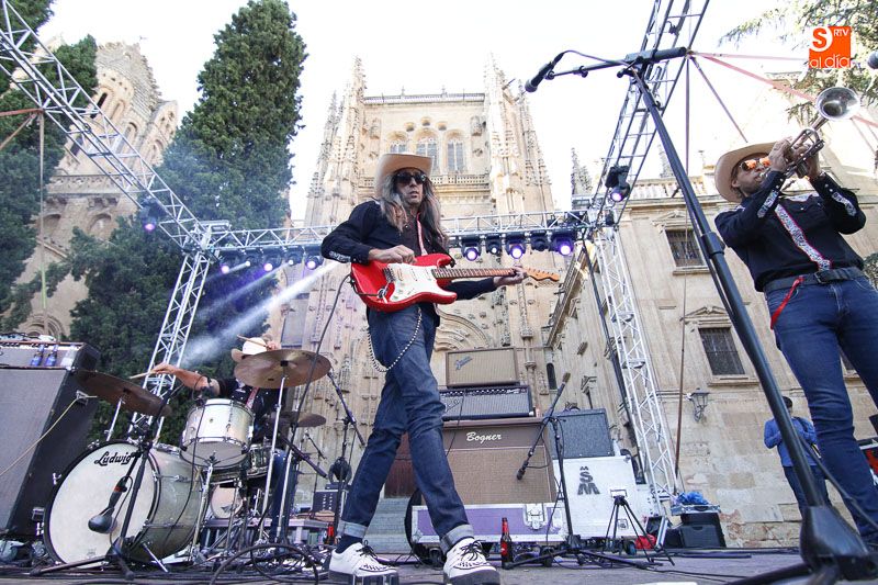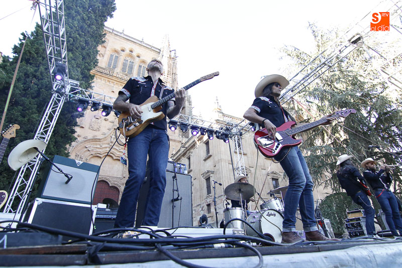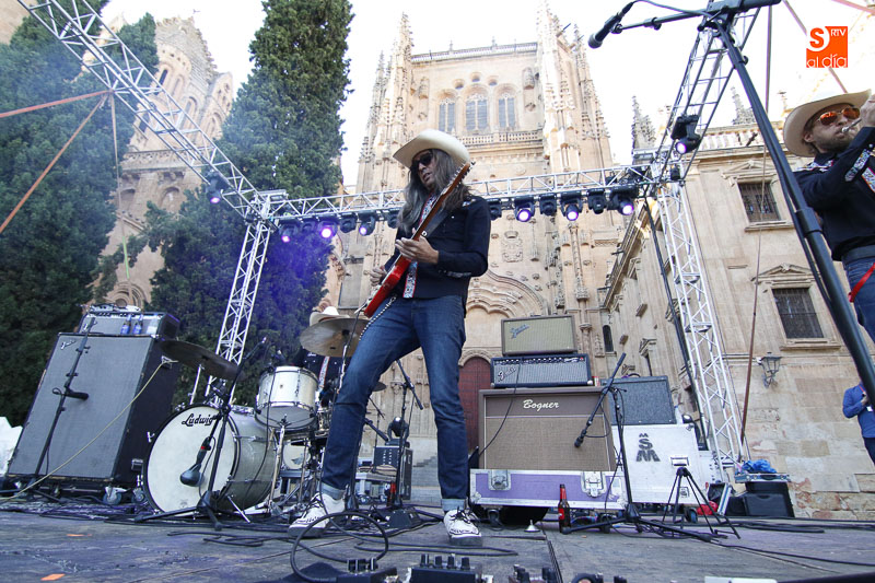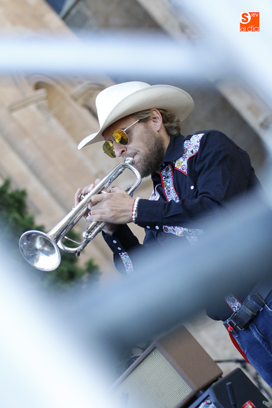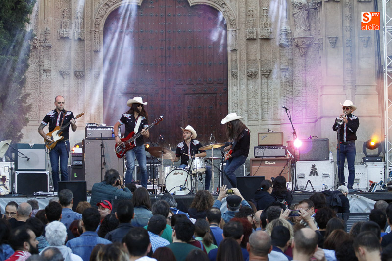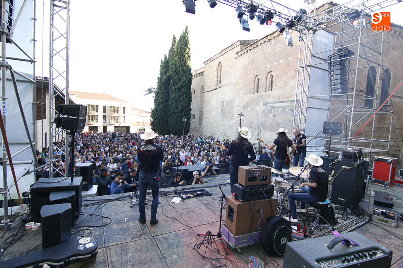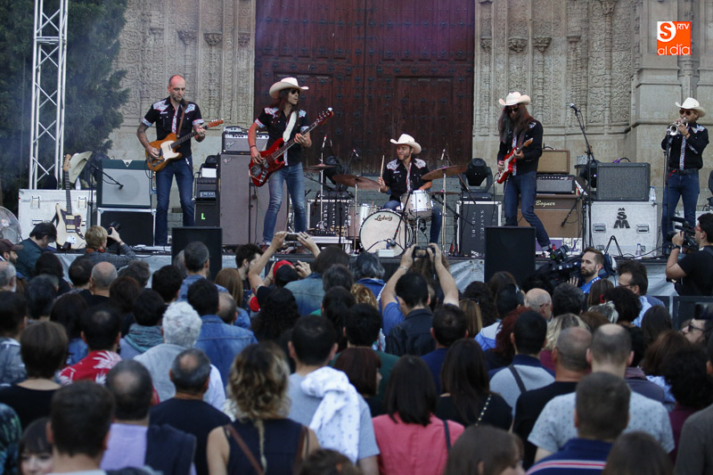 La banda madrileña Los Coronas ha protagonizado uno de los conciertos de la penúltima jornada del Festival Internacional de las Artes de Castilla y León (Fácyl). Así, en el Patio Chico resonaba la música rock instrumental de esta formación, que se caracteriza por sonidos castizos, desérticos,mediterráneos y fronterizos.