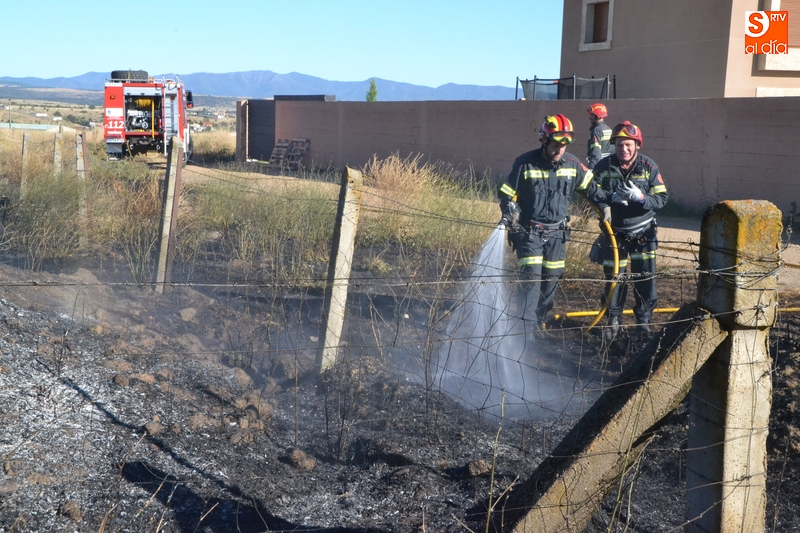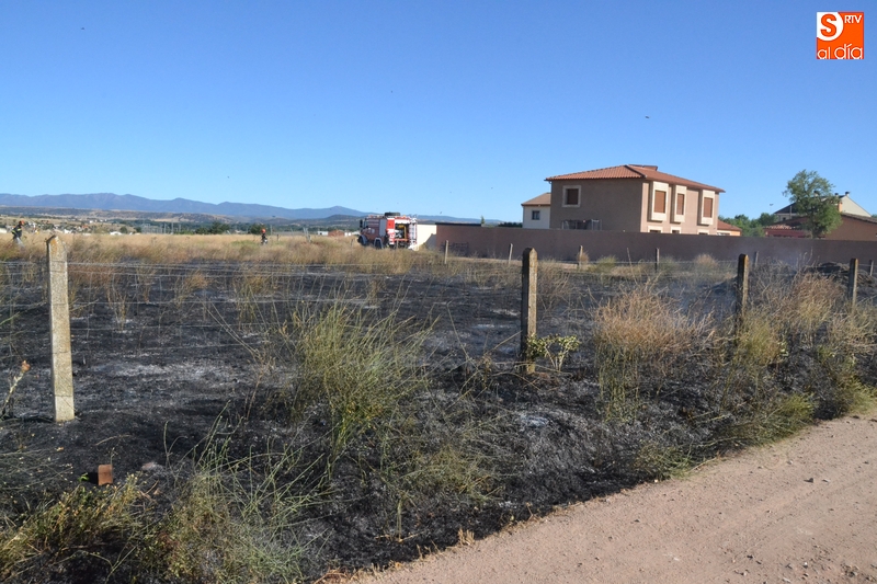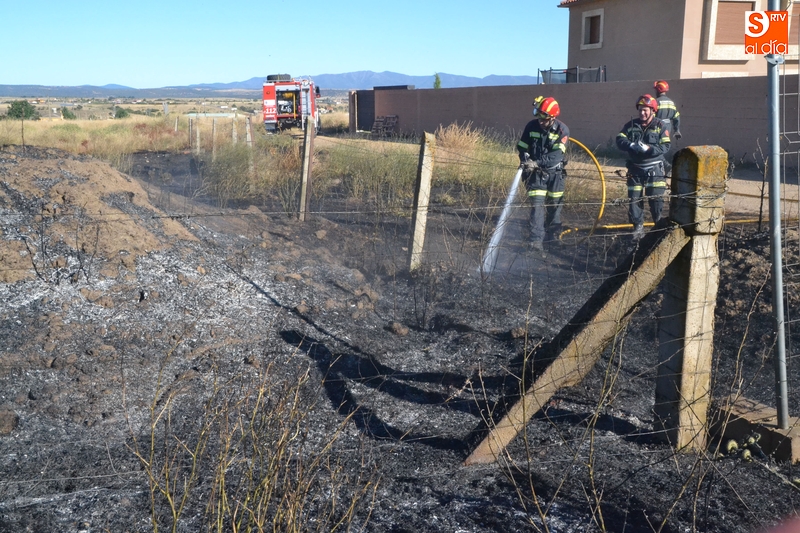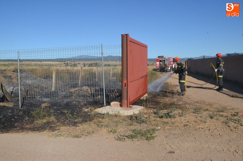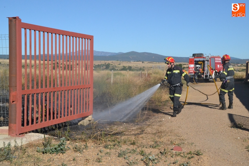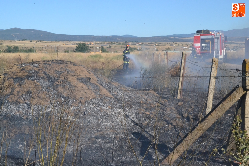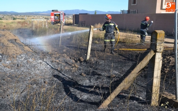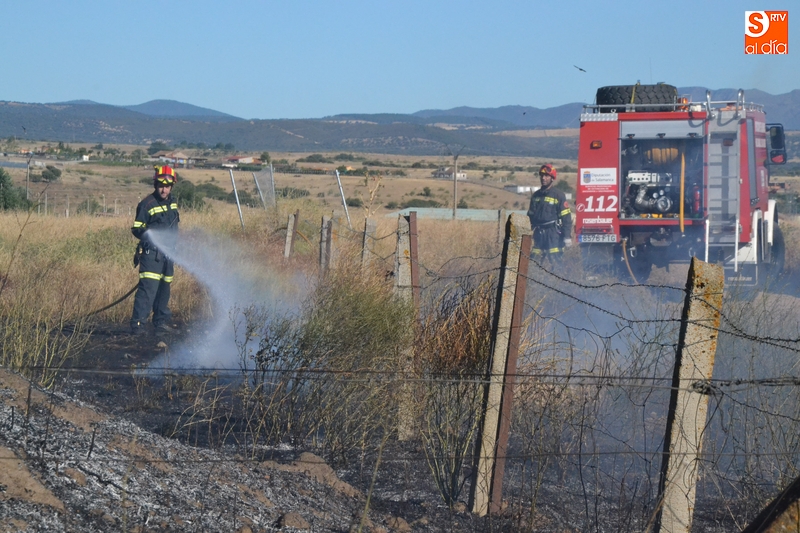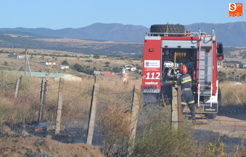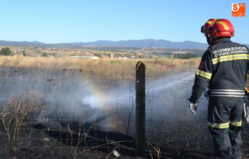 Los Bomberos de Ciudad Rodrigo tuvieron que intervenir en la tarde del domingo para extinguir un incendio de rastrojos que se había declarado en un terreno situado en uno de los laterales del camino de tierra paralelo a la Avenida de Arcachon (en la trasera del Centro Acuático y Deportivo).