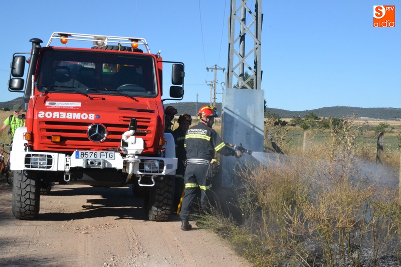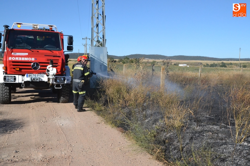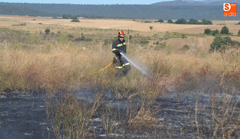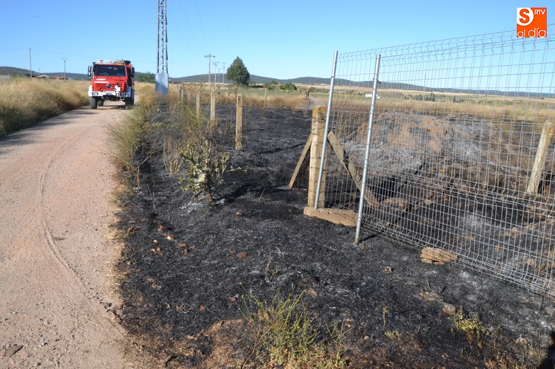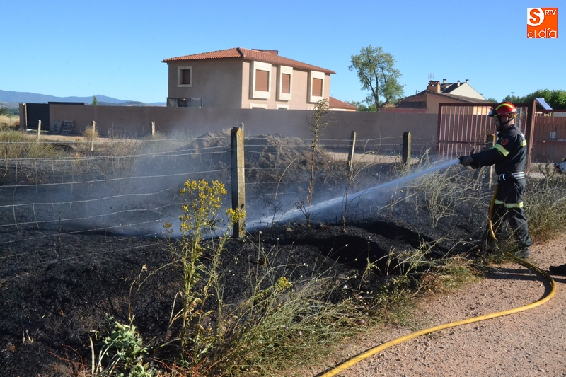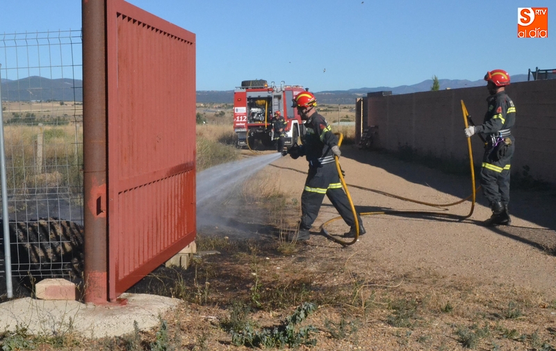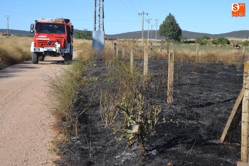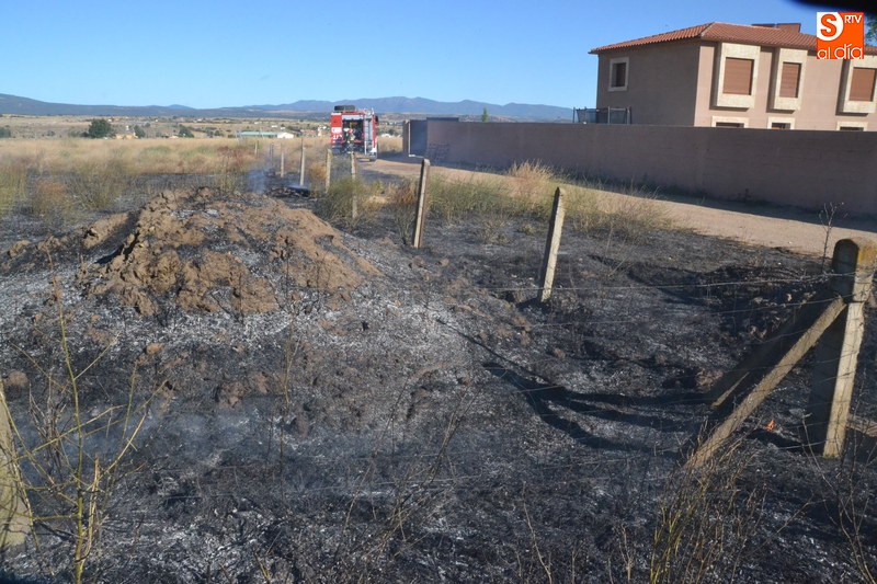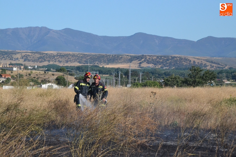Los Bomberos de Ciudad Rodrigo tuvieron que intervenir en la tarde del domingo para extinguir un incendio de rastrojos que se había declarado en un terreno situado en uno de los laterales del camino de tierra paralelo a la Avenida de Arcachon (en la trasera del Centro Acuático y Deportivo).