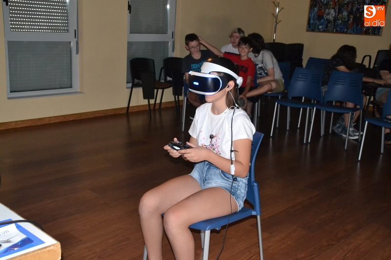 Para empezar, todos aquellos jóvenes que quisieron pudieron probar la experiencia de jugar a un videojuego (de la PlayStation 4) con unas gafas de realidad alimentada. La asistencia fue tan notable que no dio tiempo a que se pudieran poner las gafas todos los presentes, por lo que la actividad continuará este miércoles. Para amenizar la espera hasta que llegase el turno, se pudo jugar a otros videojuegos en otra sala del Espacio i.