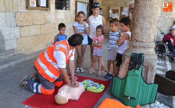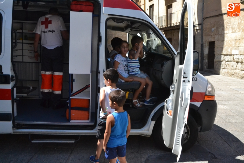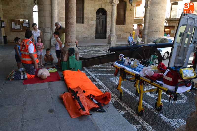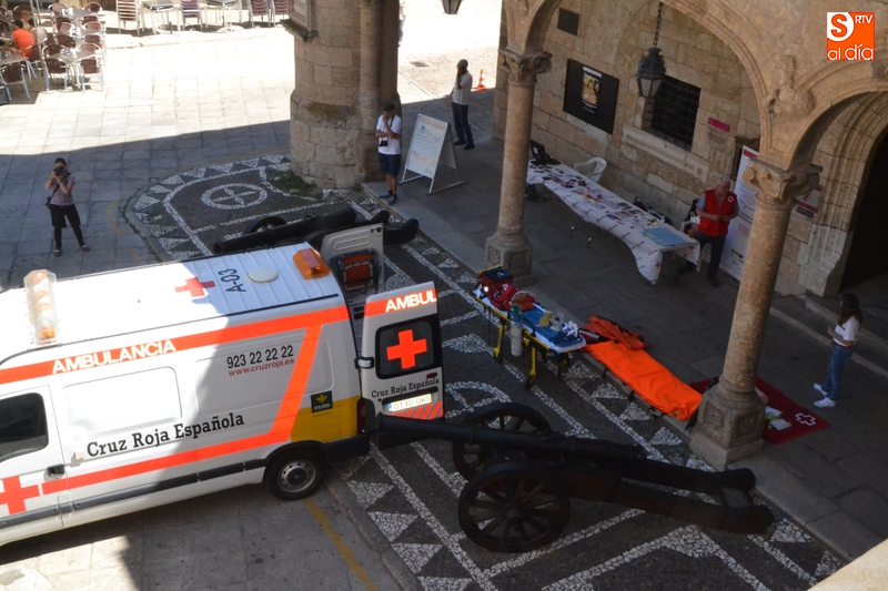Para ello, Cruz Roja desplegó varias unidades en ambos espacios. Hasta la Plaza Mayor se llevó una ambulancia, mostrando el equipo de intervención habitual de Cruz Roja, y ofreciendo demostraciones prácticas.