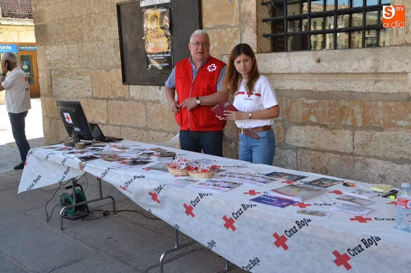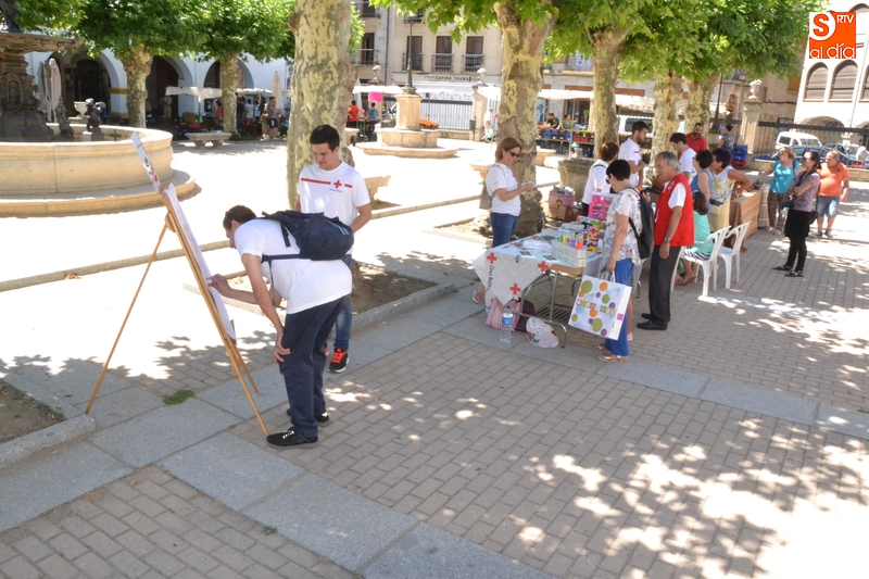 La Plaza Mayor y la Plazuela del Buen Alcalde de Ciudad Rodrigo acogieron en la mañana del martes una acción callejera de la Asamblea Comarcal de Cruz Roja que tenía como finalidad dar a conocer el trabajo que realiza la entidad e intentar captar nuevos voluntarios.