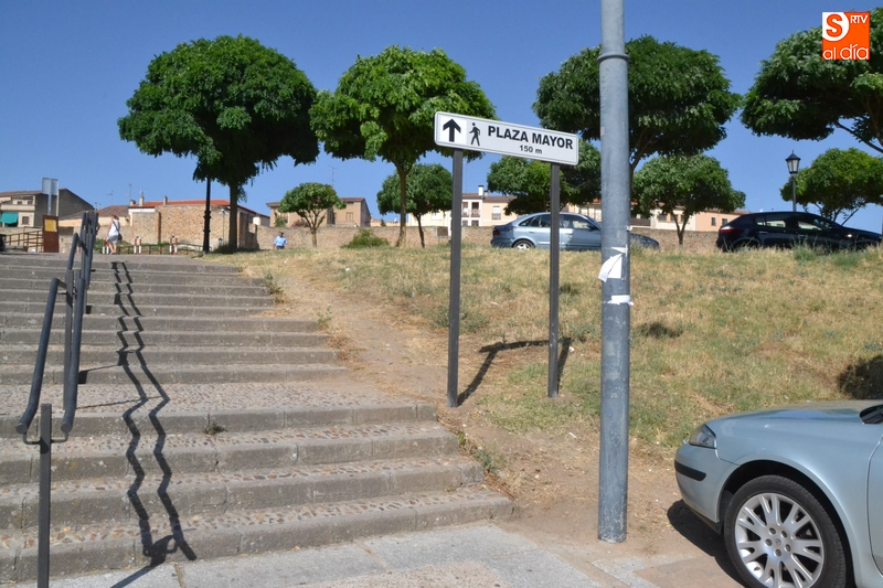 Por otro lado, ha sido colocada una señal para peatones, pensada especialmente para los que dejan sus vehículos en el citado parking, para que sepan por donde cae la Plaza Mayor y que apenas está a 150 metros andando.
