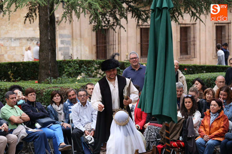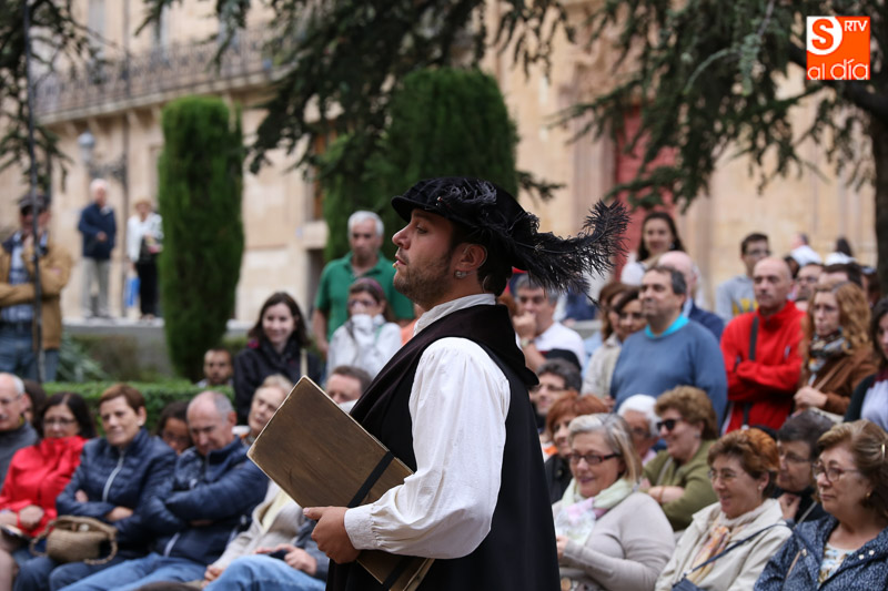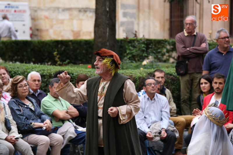 Los Jardines de la Plaza de Anaya han sido escenario este viernes de la primera representación de 'La lengua de Nebrija', la propuesta de Etón Teatro para los viernes del mes de julio, a las 21 horas, dentro del programa 'Salamanca Plazas y Patios'. Elio Antonio de Nebrija, el humanista más importante del Renacimiento y autor de una de las más altas y coherentes obras de la Filosofía de la ciencia, la Pedagogía y la Literatura, fue recibido por la reina Isabel de Castilla durante la visita real a Salamanca en 1486.