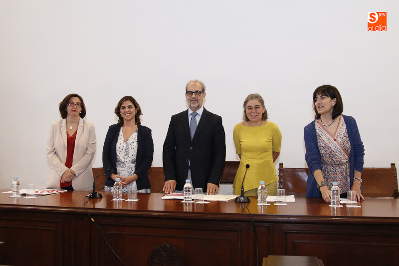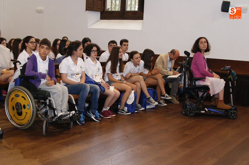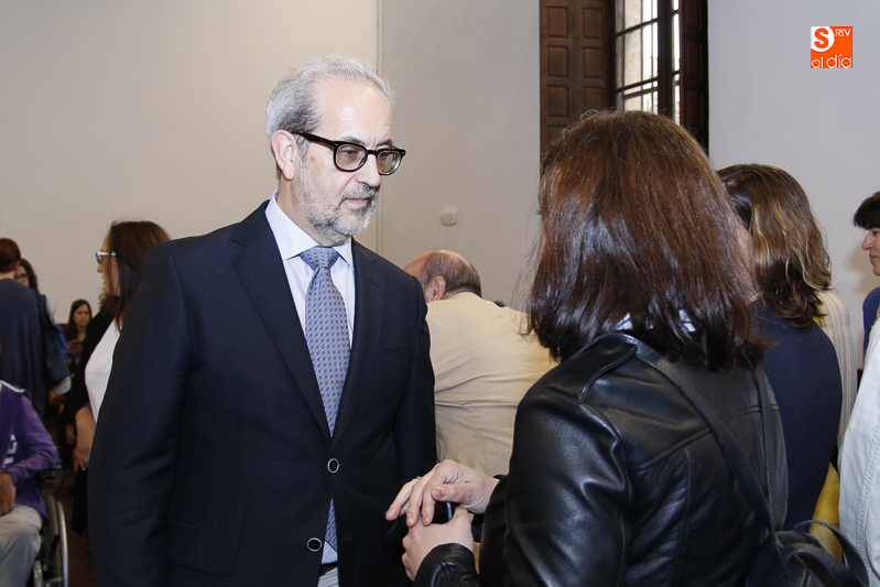 Durante el acto de clausura, el rector estuvo acompañado por Carmen Bermúdez Rojas-Marcos, subdirectora general de Formación del Profesorado Universitario y Atención a los Estudiantes del MECD; Cristina Pita Yáñez, vicerrectora de Atención al Estudiante y Extensión Universitaria de la USAL; Felicidad Viejo Valverde, vicerrectora de Estudiantes y Extensión Universitaria de la Universidad de Valladolid; Isabel Martínez Lozano, comisionada para Universidades, Juventud y Planes Especiales de la Fundación ONCE; y José Antonio Fuertes Martín, director del Servicio de Asuntos Sociales de la USAL.