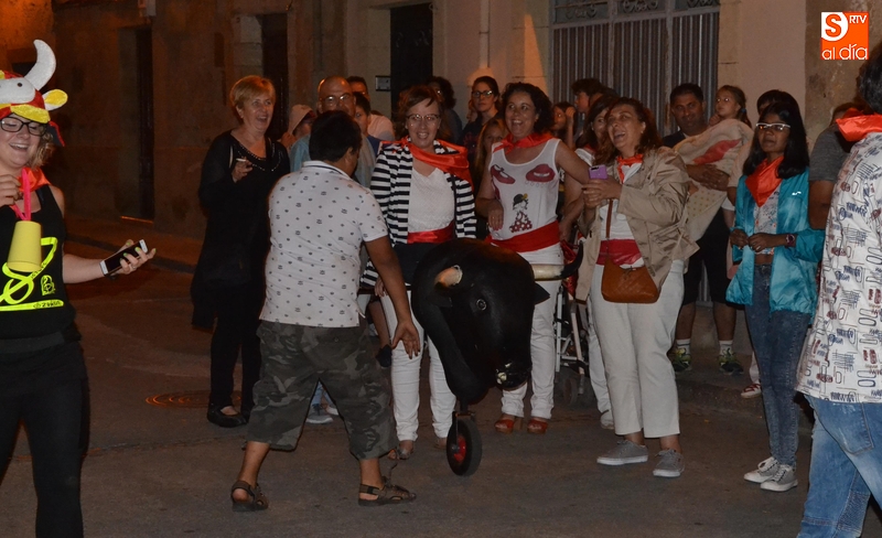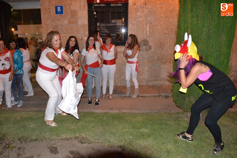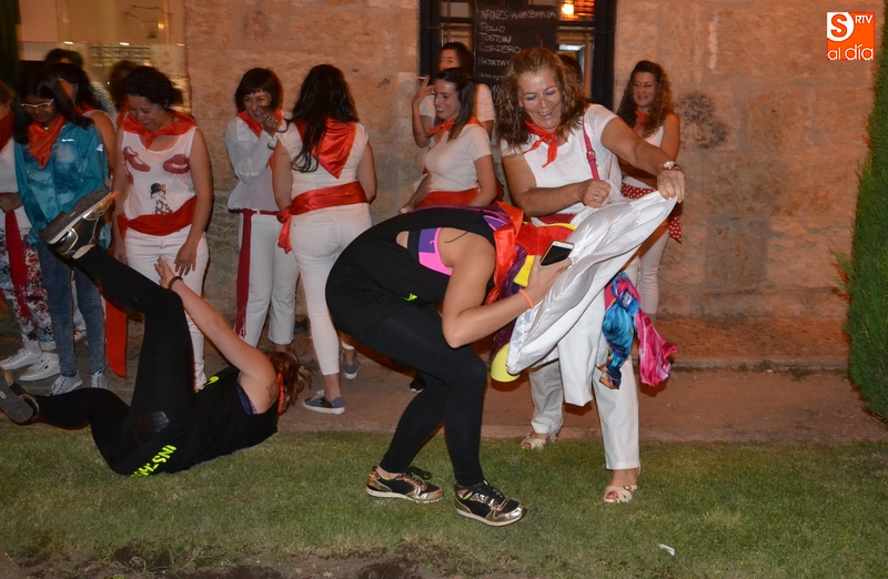 Concluida la cena, las integrantes de la Asociación decidieron llevar ese espíritu sanferminero hasta la verbena del barrio de San Andrés. Por si fuese poco su llamativa presencia -ataviadas además de esa forma tan especial-, las integrantes de Muévete se fueron a buscar un carretón para echar unas cuantas carreras en San Andrés, a las que se sumaron también unos cuantos niños.