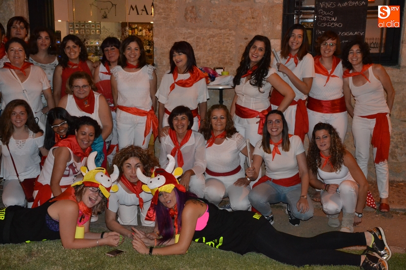 La Asociación Muévete de Ciudad Rodrigo, que imparte zumba y sevillanas en la calle Peramato, se fue de cena en la noche del viernes al Asador Mazarrasa abierto hace escasos días. Aprovechando que era el Día de San Fermín, las integrantes de la Asociación decidieron darle un toque especial a la velada, vistiéndose al estilo sanferminero (con ropa blanca y pañuelo y fajín rojos).