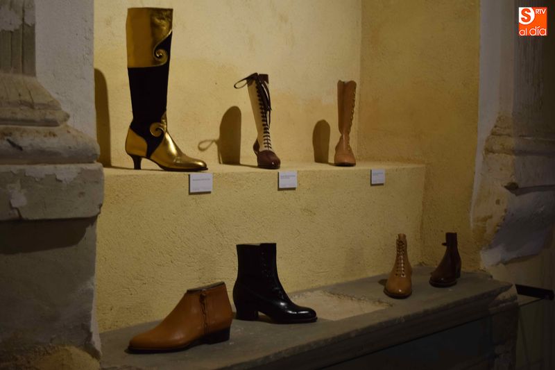 La exposición marca un pequeño recorrido por la historia del calzado: desde las sandalias romanas hasta los botines de tacón de carrete del s. XIX, pasando por los modelos que lucieron Al Capone, Louis Amstrong o el príncipe de Gales, así como las botas de ante negro y piel de cabrito dorado diseñadas por Yves Saint Laurent en 1976.