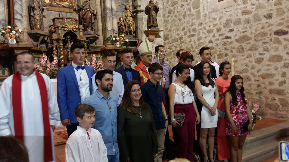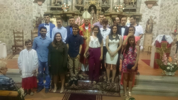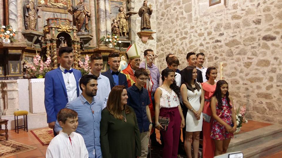 La iglesia parroquial de San Esteban de la Sierra acogió ayer por la tarde la confirmación de una quincena de jóvenes de la Sierra de Francia. El Obispo de Salamanca, Carlos López, ofició la ceremonia en la que participaron confirmandos de