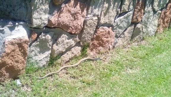 Una culebra, tal y como se aprecia en la imagen, es el incómodo inquilino que una usuaria de la piscina municipal de San José ha captado campando por el césped este viernes a mediodía. Sin embargo, lo que podría ser una anécdota, ta