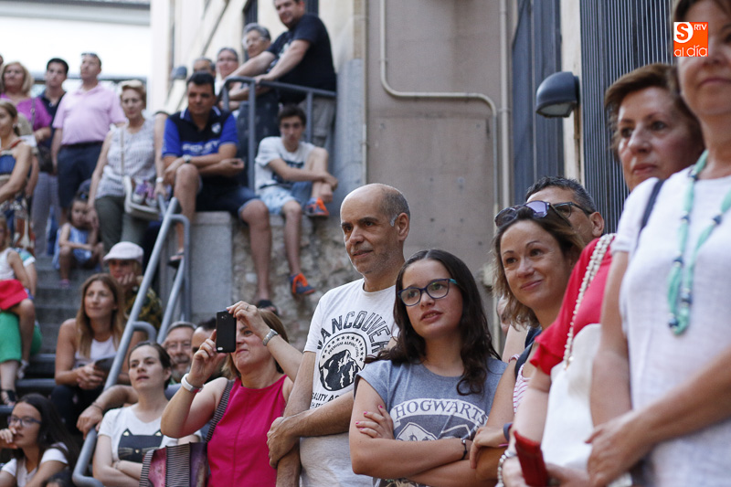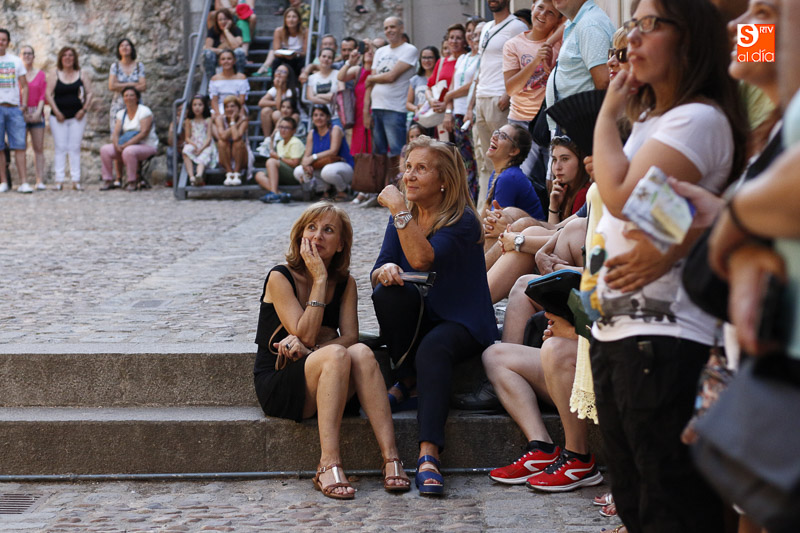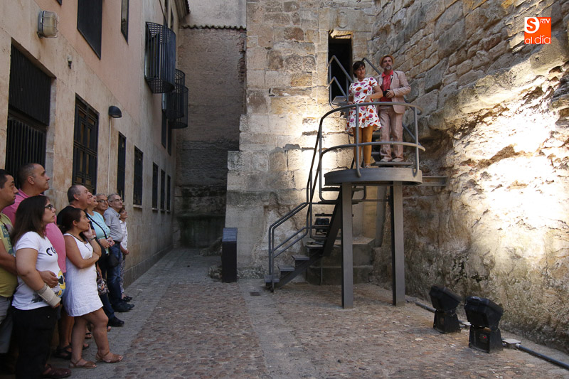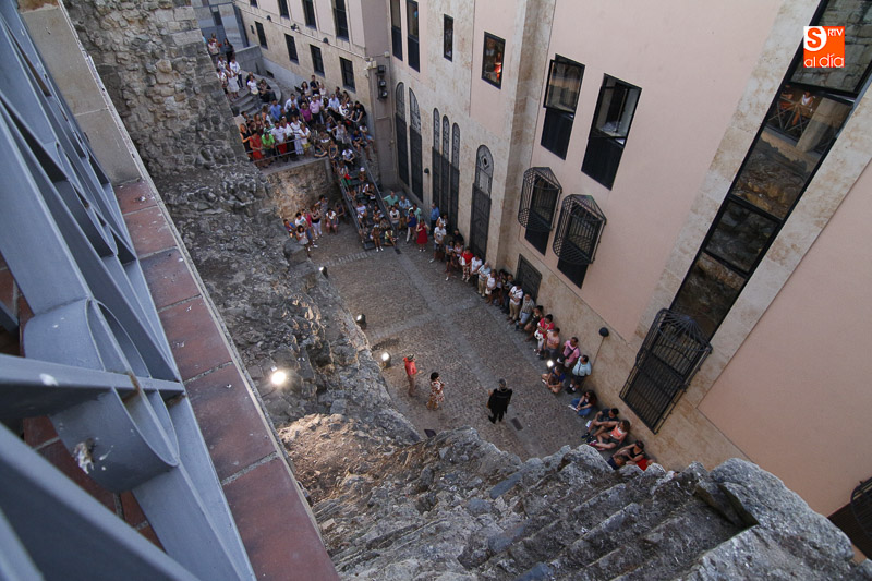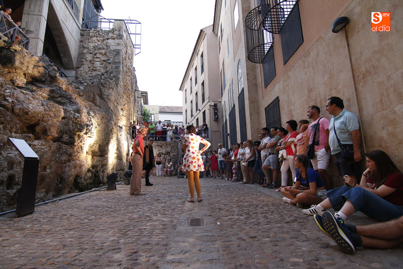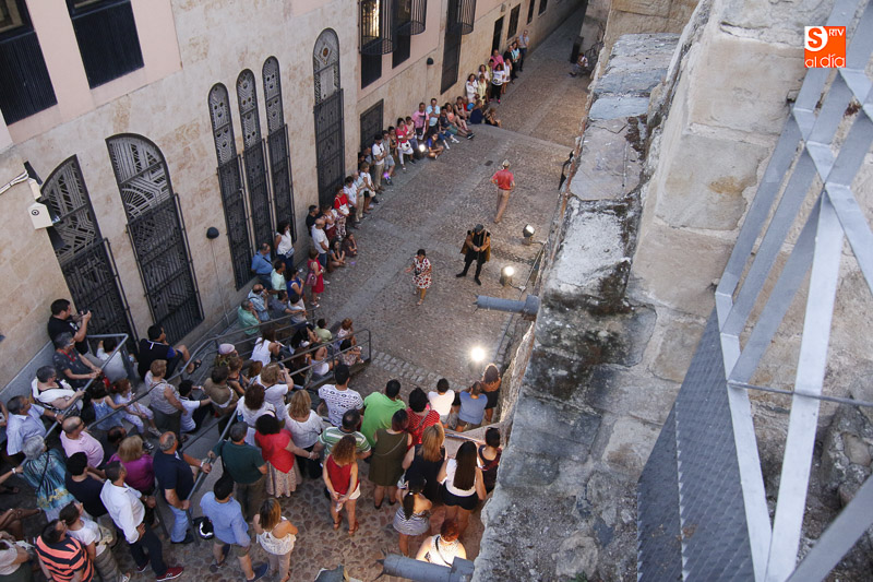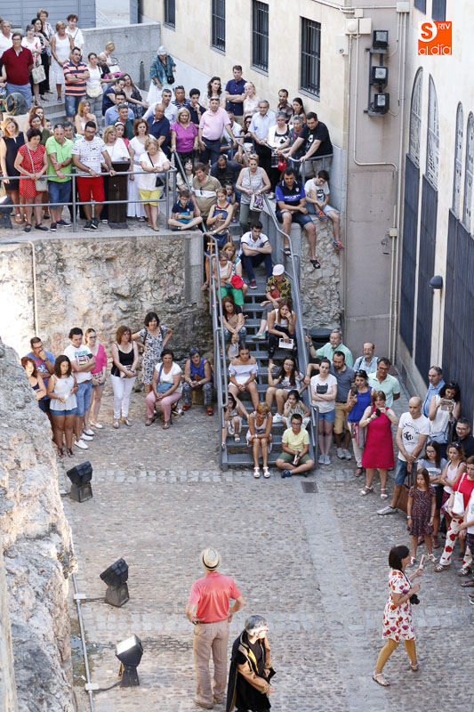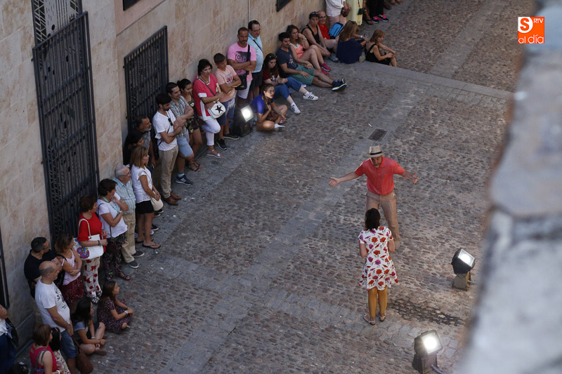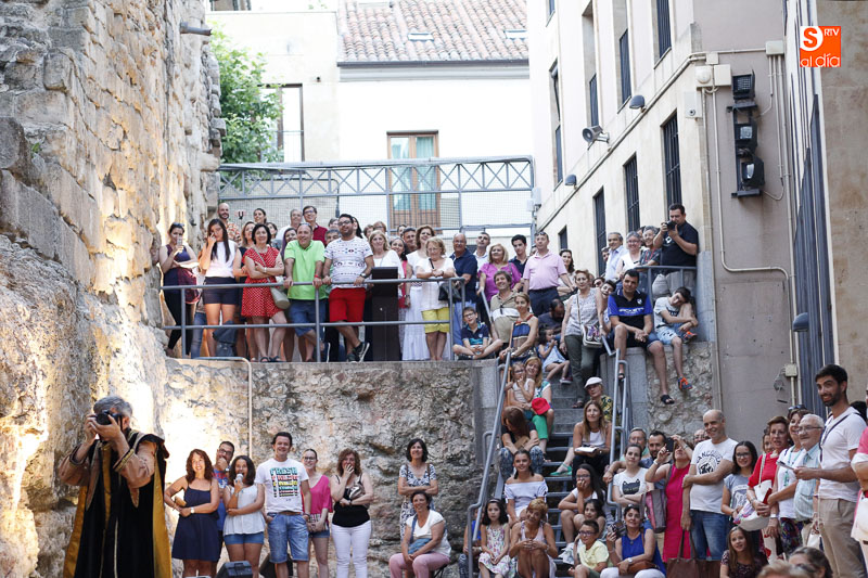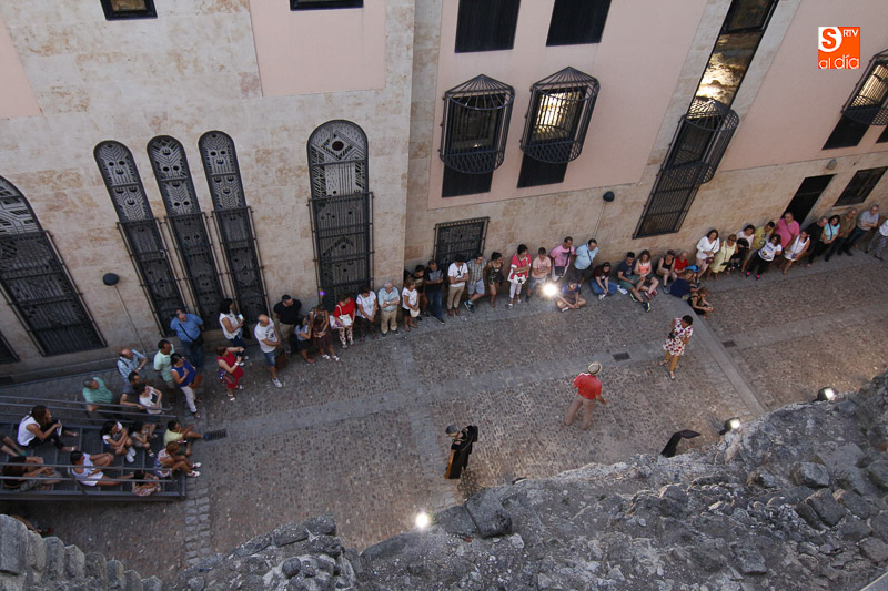 Salmantinos y visitantes han podido disfrutar este sábado de una nueva representación de 'La Cueva de Salamanca, todo un mito de oro' a cargo de Los Absurdos Teatro, una función que forma parte del programa 'Salamanca Plazas y Patios' y que se ofrece cada viernes y sábado hasta el 26 de agosto en tres pases: a las 21.00, 21.30 y 22.00 horas.