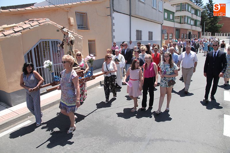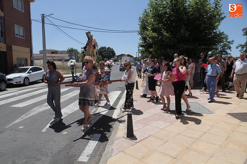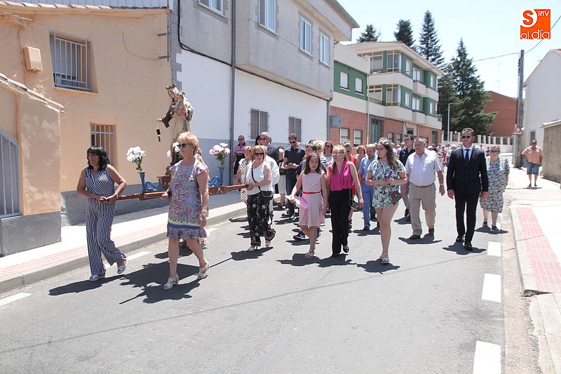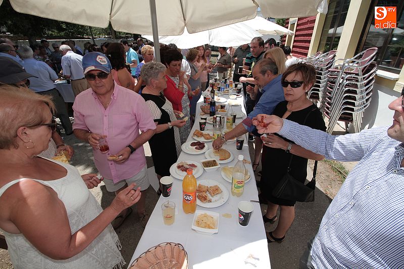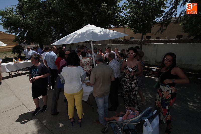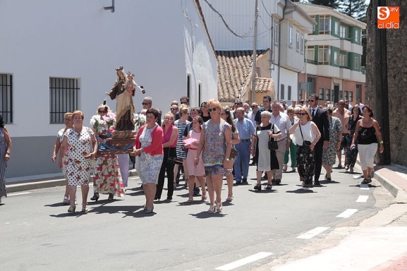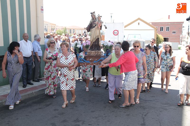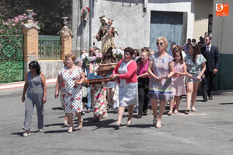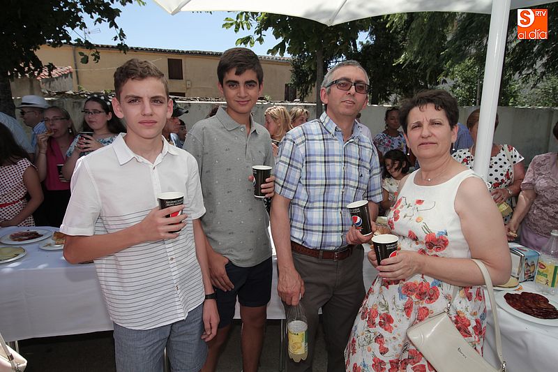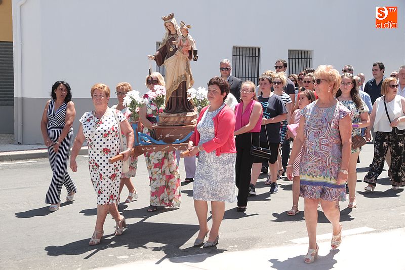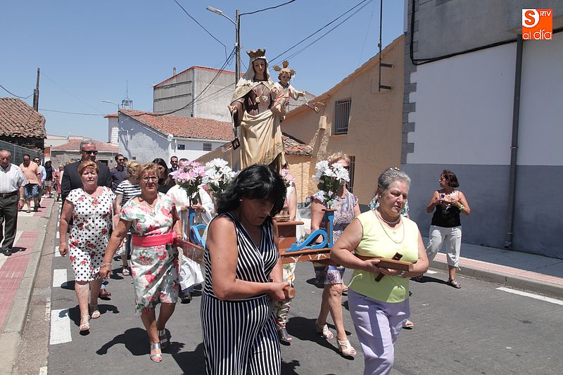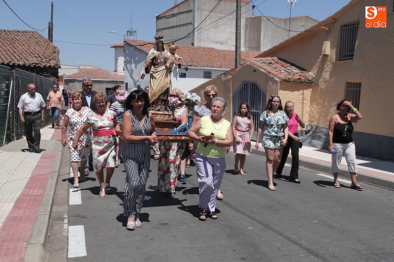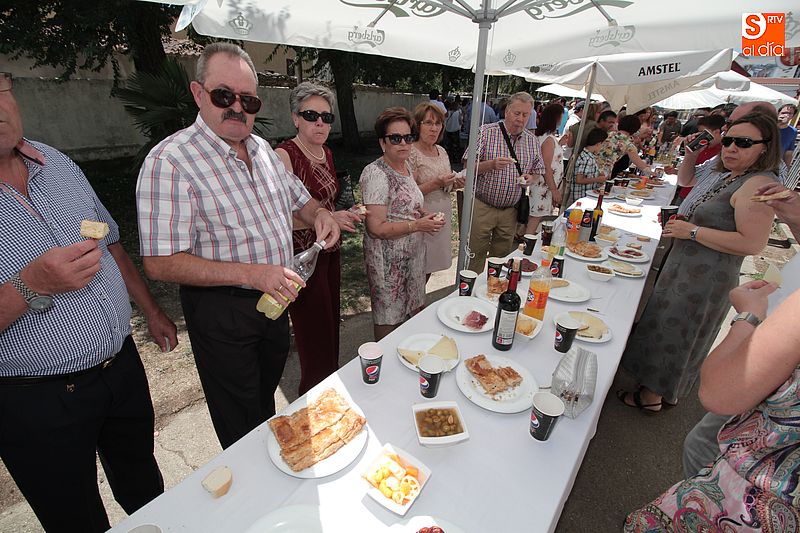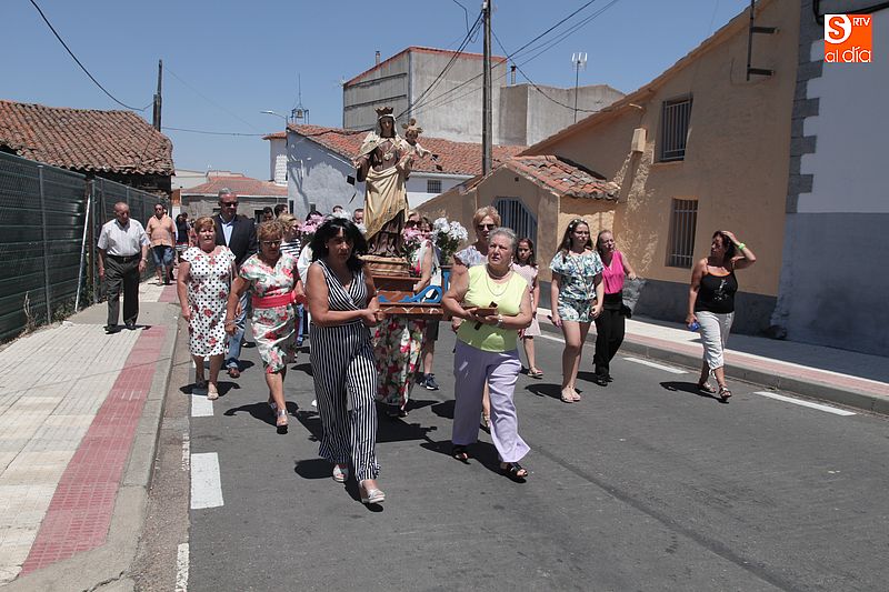 Los habitantes de Campillo de Salvatierra disfrutaron hoy del día grande de los festejos con la celebración de los actos religiosos en honor a la Virgen del Carmen que ponen el punto final a los festejos que comenzaron el pasado jueves. A la una de la tarde comenzó la misa cantada en la parroquia local, en la uqe el coro de la iglesia de Guijuelo interpretó un nuevo himno compuesto para la ocasión. La alcaldesa pedánea, Rosa Hernández, agradeció personalmente a los integrantes del coro el detalle con la parroquia de Campillo y les felicitó por la pieza musical. Con un fuerte sol y altas temperaturas se celebró la tradicional procesión hasta la plaza Mayor con la imagen de la Virgen, antes de regresar al templo. El alcalde de Guijuelo, Julián Ramos, acompañado de gran parte de sus concejales, todo el grupo municipal socialista y el juez de paz, José Conde, acudieron a la cita de la localidad vecina, que cierra unos exitosos festejos repletos de música, tradición y altas temperaturas. A continuación, se invitó a los presentes al tradicional convite en el restaurante La Escuela, al que asistieron decenas de vecinos.