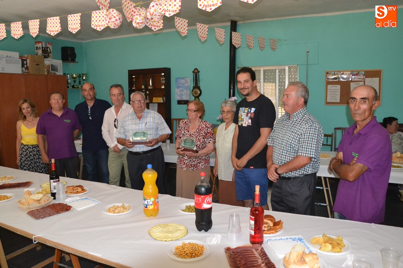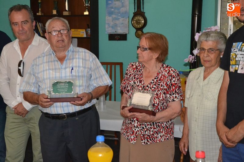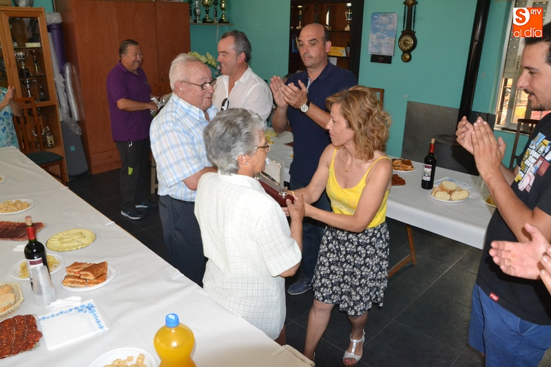 La jornada final de las fiestas en este barrio sólo ha incluido, como es tradición, un vino español en el local de la Asociación de Vecinos, aunque se ha aprovechado para hacer un homenaje a varios de los socios más antiguos. En esta ocasión, han sido distinguidos el matrimonio integrado por Santos Huebra Martín y Teresa Rodríguez Santos, y Margarita Díez González.