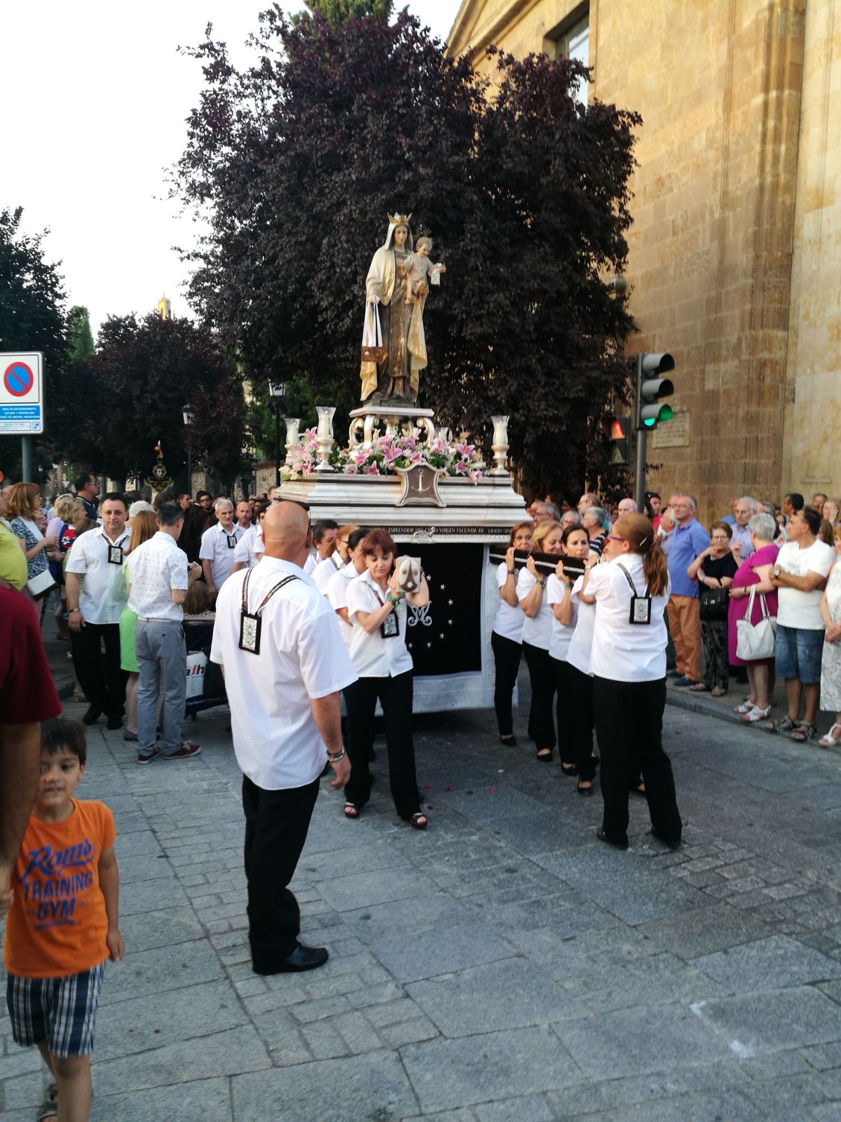 Un año más, cada 16 de julio, la Virgen del Carmen ha salido de la iglesia del Carmen de Abajo, en Arroyo de Santo Domingo, en procesión por la ribera del río Tormes tras la eucaristía, acompañada por Banda de Cornetas y Tambores del Cristo del Amor y de la Paz numerosos salmantinos.