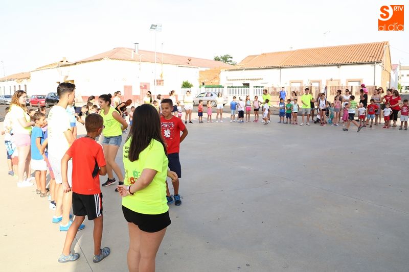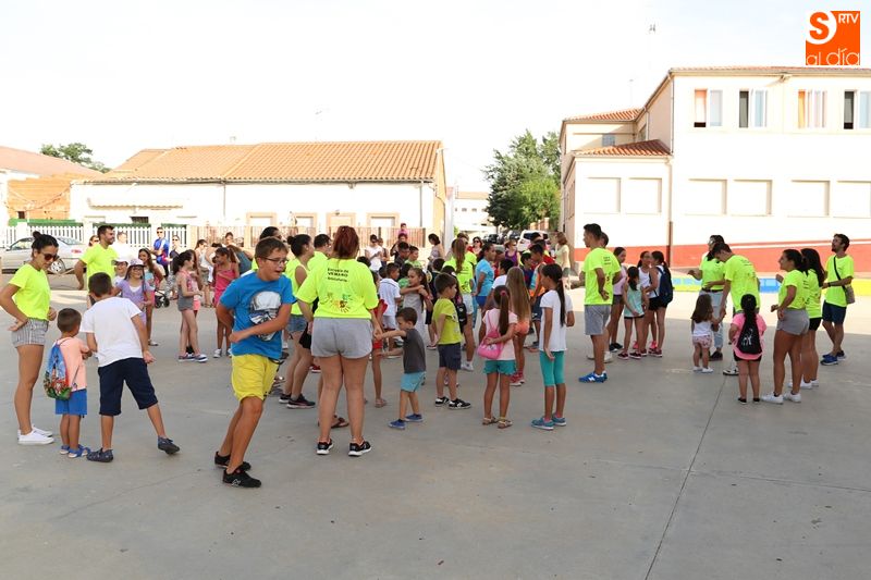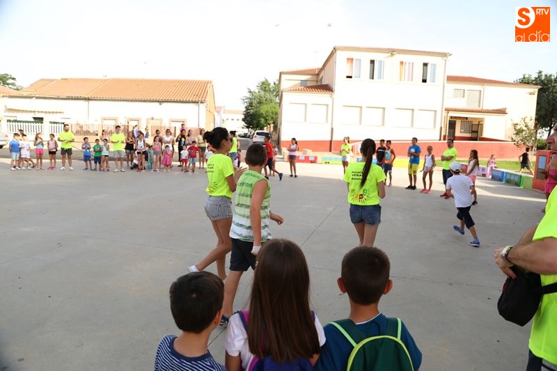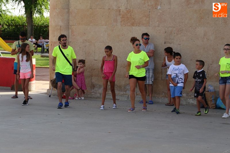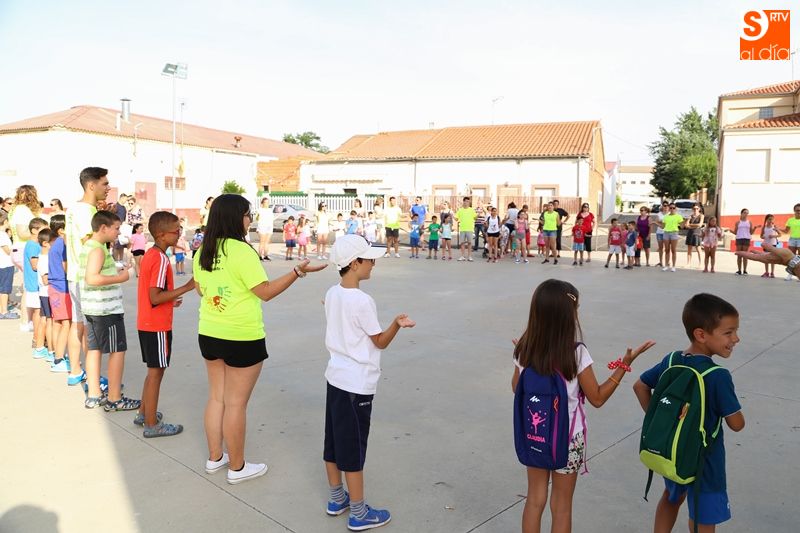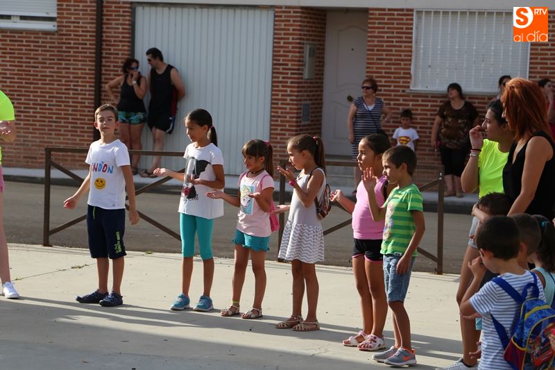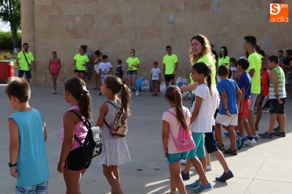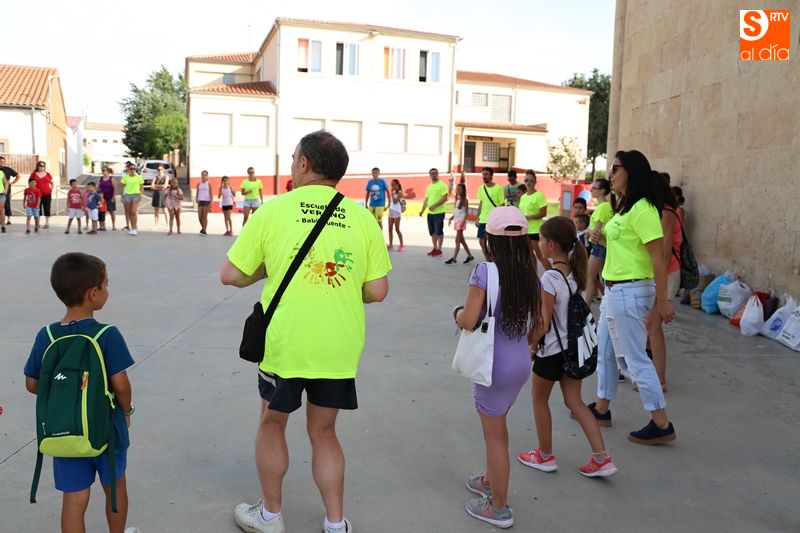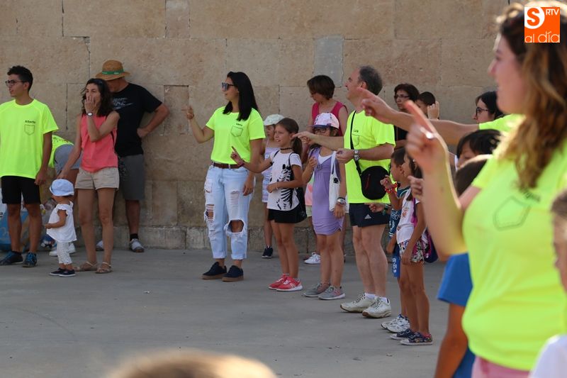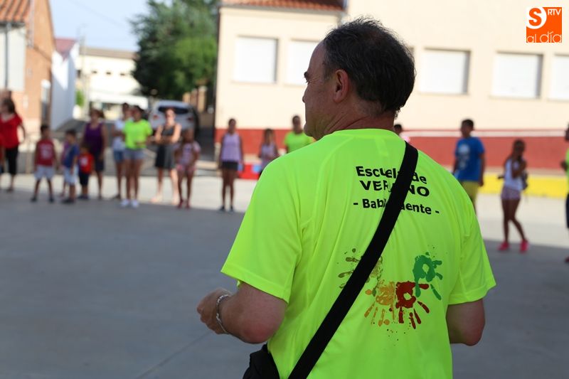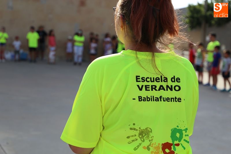 Las divertidas canciones que cada día abren la Escuela de Verano de Babilafuente han vuelto a sonar este lunes en el frontón viejo, cantadas por los 75 niños y niñas apuntados y sus monitores. Hasta el 28 de julio disfrutarán de variadas actividades relacionadas con las Bellas Artes, el tema elegido para la edición de este año.
