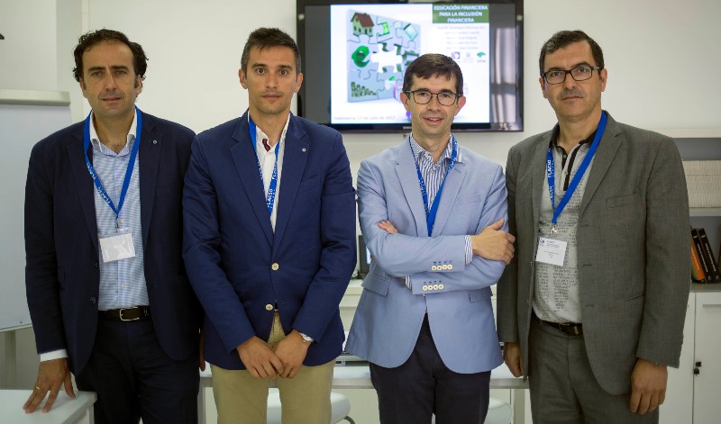 El proyecto 'Educación Financiera para la inclusión financiera', cuya presentación ha tenido lugar en la Facultad de Derecho de la universidad salmantina, ha sido elaborado por un equipo integrado por los siguientes miembros de Edufinet: José M. Domínguez (director), Germán Carrasco, Sergio Corral, Rafael López y José María López.