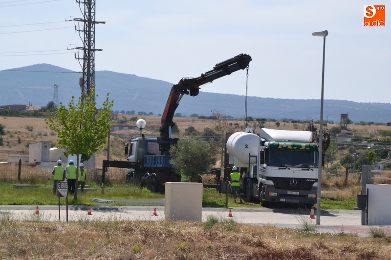 La empresa Redexis Gas procedió en la mañana del lunes a la retirada de los primeros depósitos temporales de gas que se instalaron durante la primavera en cinco puntos diferentes de Ciudad Rodrigo para poder realizar el cambio del suministro de gas propano a gas natural sin tener que cortar el servicio por una larga temporada.
