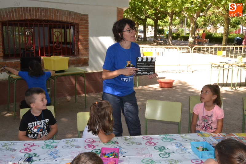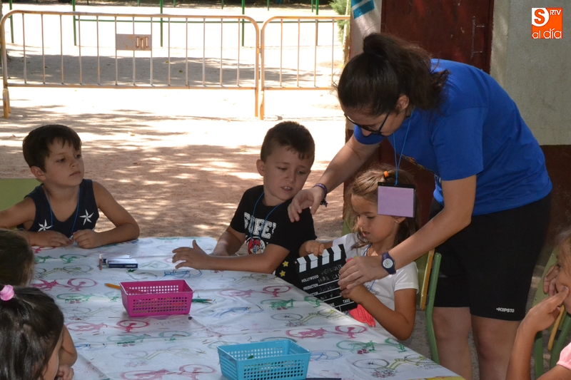 A través de esas actividades, los niños se sumergirán en el mundo del cine, aprendiendo oficios, géneros, técnicas o nociones sobre vestuario, maquillaje, iluminación o efectos especiales. Por ejemplo, los niños asistentes en la mañana del lunes aprendieron qué es una claqueta y para qué sirve.