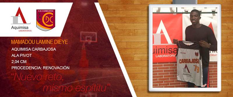 El cuerpo técnico de Aquimisa Carbajosa, con Víctor Rico a la cabeza, no para de trabajar en la composición de la plantilla y los primeros jugadores no se hacen esperar. Es el caso del senegalés Mamadou Lamine Dieye, "Dudu", que renueva por el equipo de Carbajosa para volver a la categoría donde ya ha competido en años anteriores.