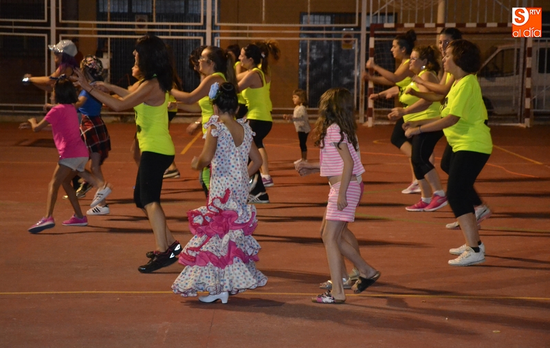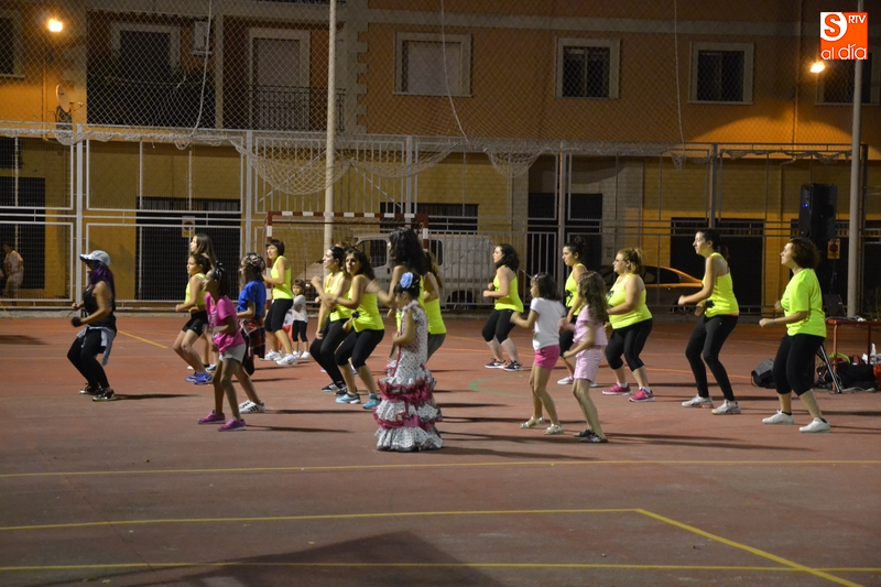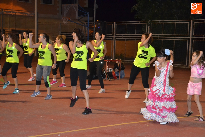 A continuación, fue turno para cambiar de estilo, apostando por la zumba (también de la mano de Muévete), con toda una master class. A esta exhibición se pudieron sumar aquellas personas que quisieron, especialmente niños. El doble espectáculo de la noche del viernes fue seguido por numerosos familiares, amigos y otros vecinos distribuidos por el paseo de la zona recreativa del barrio.