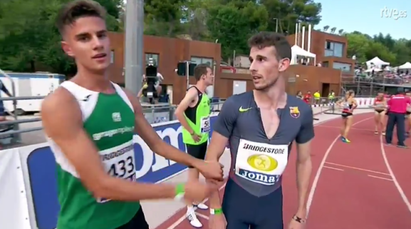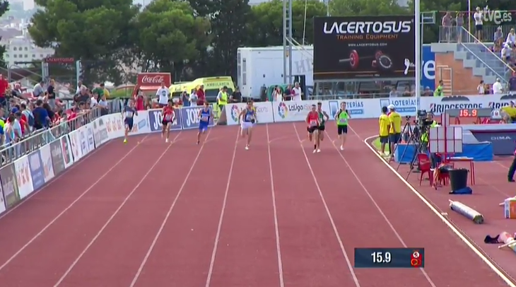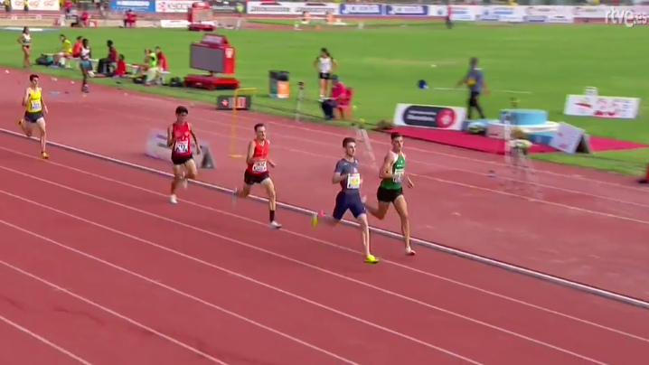 Cómodo pase de Álvaro de Arriba a la final del Nacional al Aire Libre   | Imagen 1Allí, un atleta, David Palacio, quiso sobrepasarle, pero Álvaro de Arriba mantuvo la 3ª plaza, para iniciar al paso por los 600 metros el ataque final, entrando ya en la recta de meta en primera línea. Controlando en todo momento la situación mirando para atrás numerosas veces, el atleta de La Fuente se dejó ir en los últimos metros, ganando la semifinal otro atleta, Pablo Sánchez-Valladares ?el más joven-, que hizo un tiempo de 1'48"77, tres centésimas por delante de Álvaro de Arriba.