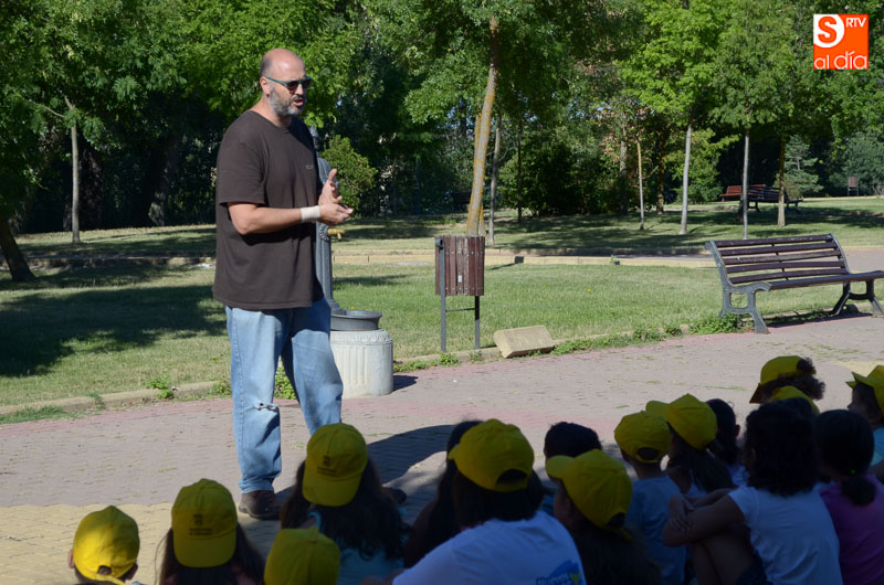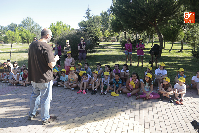 El Aula Ambiental de Huerta Otea ha acogido hoy a alrededor de una veintena de niños de 4 a 12 años del campamento del CEAS de Tejares, que han seguido de cerca una actividad que ha tenido que ver con la captura de aves con redes y anillamiento.