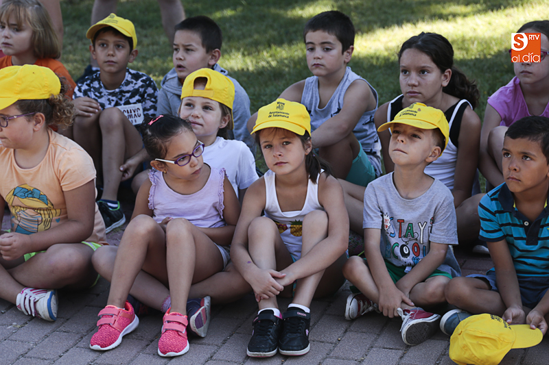 Las concejalas de Medio Ambiente y Participación Ciudadana y Educación en el Ayuntamiento de Salamanca, María José Fresnadillo y Carmen Sánchez Bellota, han visitado este lunes a los participantes de una de las actividades propuestas en el programa municipal 'Apúntate al Verano 2017'.