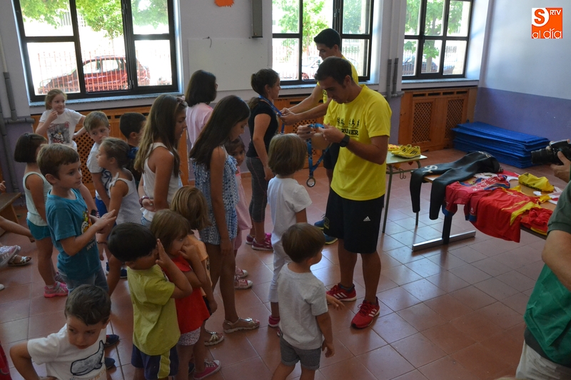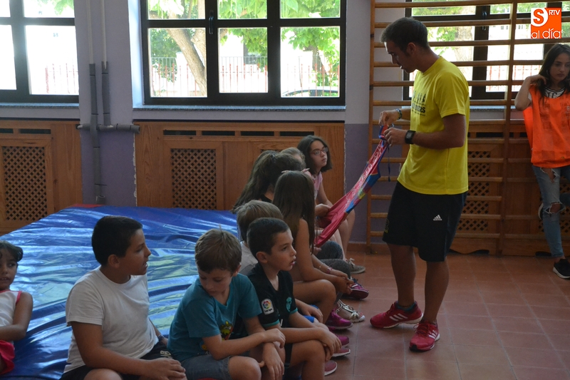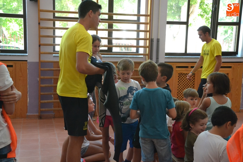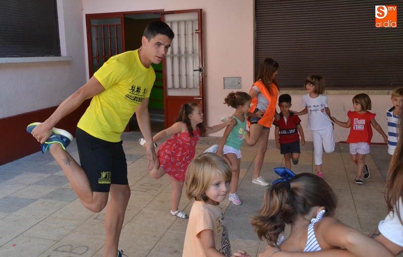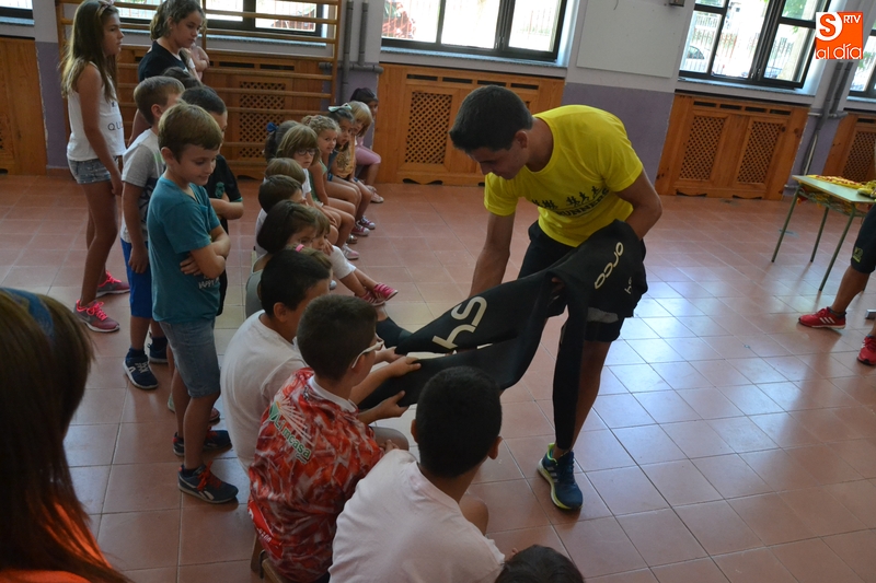 Continuando con las sesiones que han dedicado en los últimos días al mundo del deporte, el programa Conciliamos en Verano que se desarrolla en el Colegio San Francisco de Ciudad Rodrigo tuvo como protagonistas en la mañana del lunes a varios deportistas de élite. Concretamente, se acercaron al centro el atleta Alejandro Codesal y el duatleta y triatleta Pedro Ramos, que se unieron a uno de los monitores de Conciliamos, el atleta Daniel Javier Bravo.