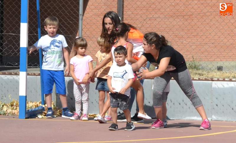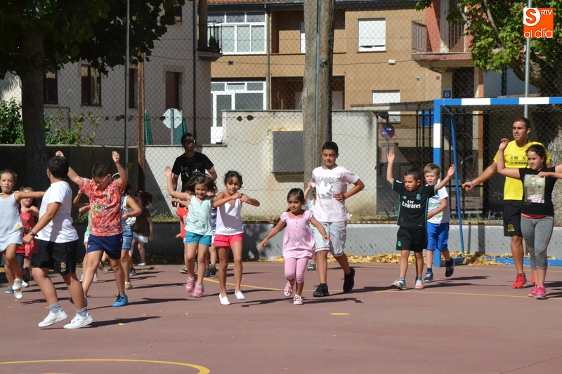 A continuación, fue turno para la parte 'práctica' de la mañana, con una sesión de entrenamiento en el exterior del edificio. En este sentido, primero hicieron unos ejercicios de calentamiento para acercarse a continuación a la pista deportiva, donde realizaron varios ejercicios y juegos más. Como recuerdo de su visita, los deportistas sortearon regalos entre los alumnos.