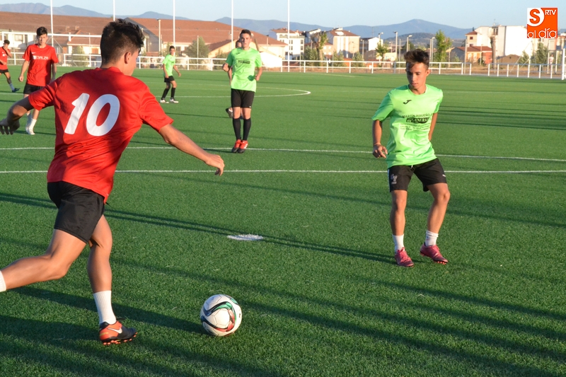 Tras esas dos opciones, se entró en unos minutos abiertos, algo más calmados, hasta que Raúl empezó a certificar la victoria de los suyos en el 42' con un gran disparo desde la izquierda. Isma mantuvo a los suyos tras salvar otra opción posterior de Raúl, mientras que en ataque Samu botó una falta que despejó Dani Crespo cuando iba a gol.