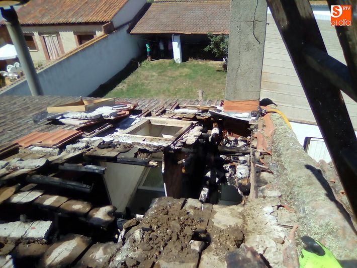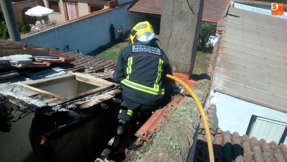 Un incendio generado como consecuencia de una chimenea produjo graves destrozos en la cubierta de una vivienda de dos plantas esta tarde en el municipio de Navales. Los hechos ocurrieron en torno a las 15:00 horas del mediodía y hasta la localidad salmantina tuvieron que desplazarse dotaciones de Bomberos Voluntarios de Alba de Tormes y de Peñaranda de Bracamonte.