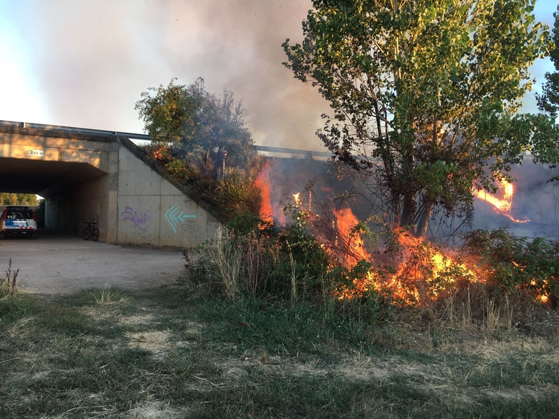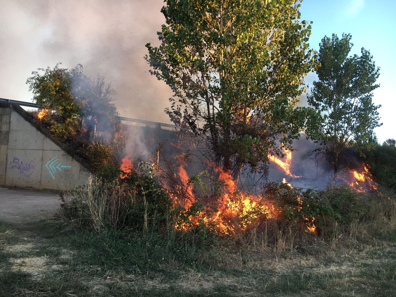 Los equipos de extinción de incendios tuvieron que intervenir a última hora de la tarde del miércoles para apagar las llamas de un fuego declarado en la zona de las Huertas de la Artesa de Ciudad Rodrigo, concretamente, en uno de los laterales de la A-62.