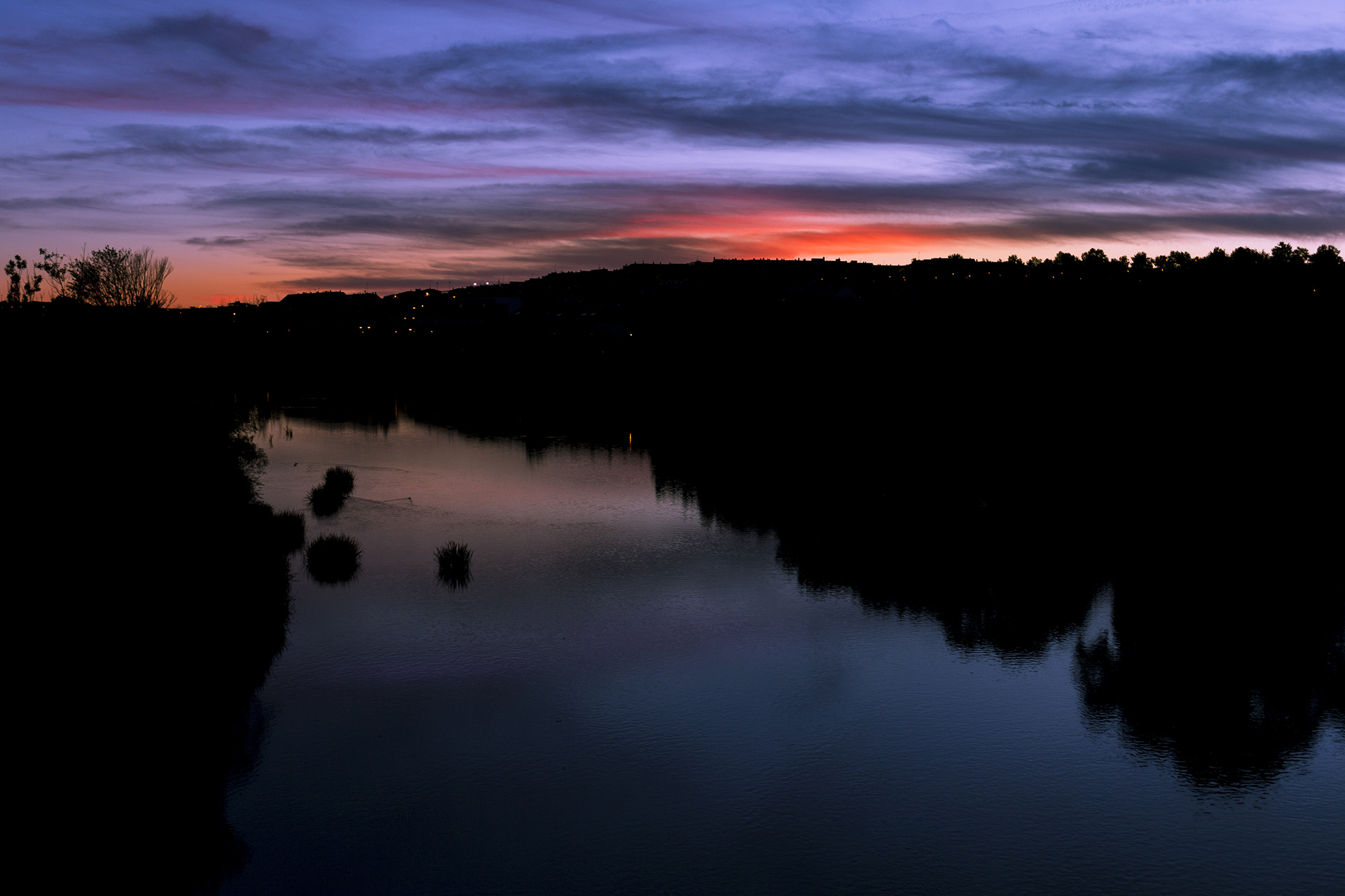 Sobre el espejo del agua se deslizan los árboles, el brillo tenue de las últimas horas. Avanza en este río de almíbar la apacibilidad de la luz que precede a la noche, la barca del tiempo. En las orillas, la ciudad que deja una huella imborrable en tus ojos. En el cielo, una pequeña mota. Me dices que es la luna y te siento.