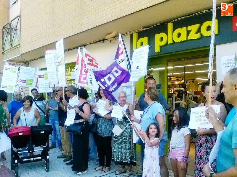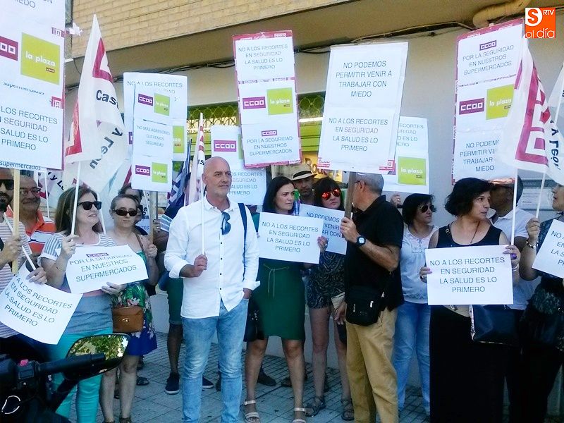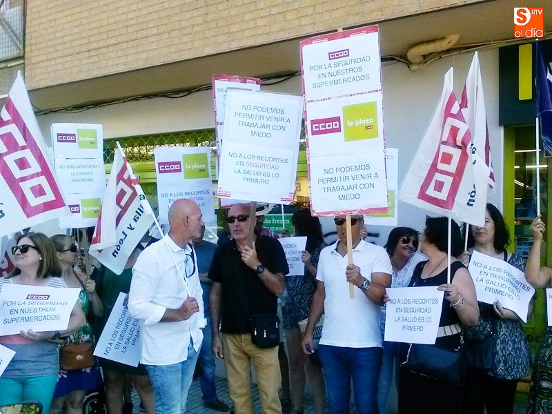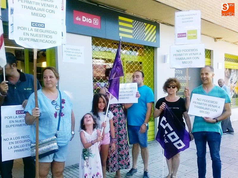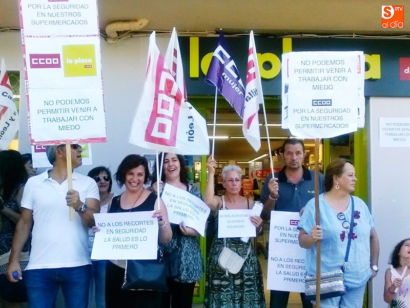 Trabajadores del Supermercado La Plaza de Día, ubicado en la Carretera de Ledesma 62, junto a integrantes del sindicato mayoritario en esta empresa, Comisiones Obreras, se han concentrado al mediodía de este miércoles, con el fin de denunciar la inseguridad con la desempeñan sus funciones, puesto que han sufrido "reiteradas agresiones por parte de algunos clientes" y aseguran que "la empresa aún no ha puesto ninguna medida para evitar estas situaciones".