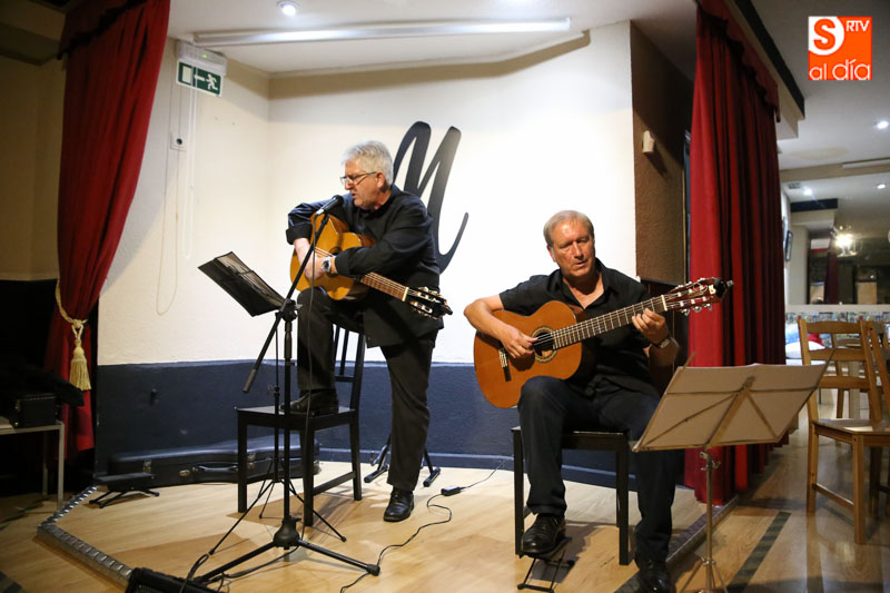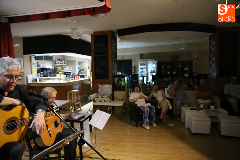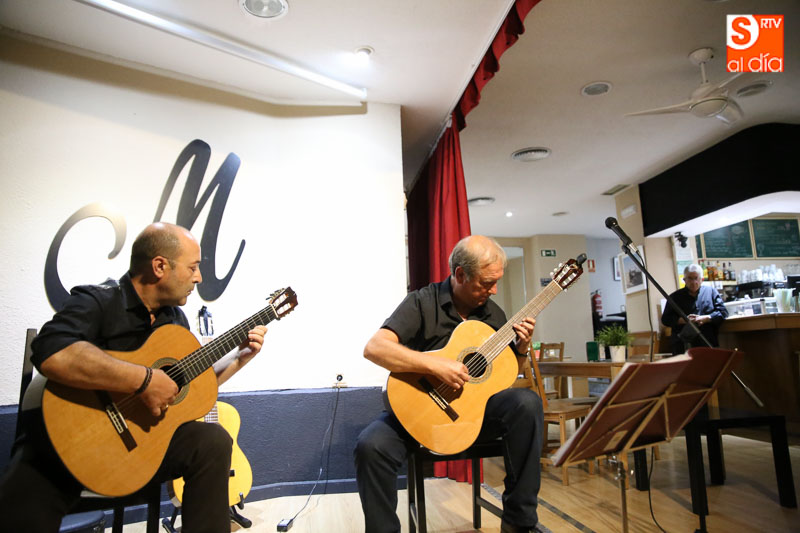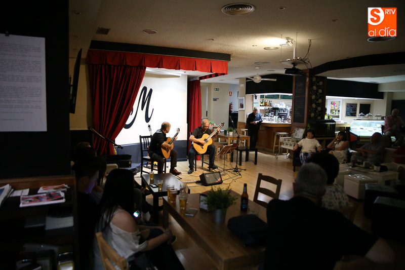 El Manolita Café acogió este jueves el espectáculo 'Guitarras y Versos', un cóctel de música y poesía a cargo de Luis Fiz, Beni Frutos y Toño Blázquez. Se trata de un espectáculo intimista y sosegado dividido en dos partes. En la primera Luis y Beni interpretaron con guitarra clásica temas populares.